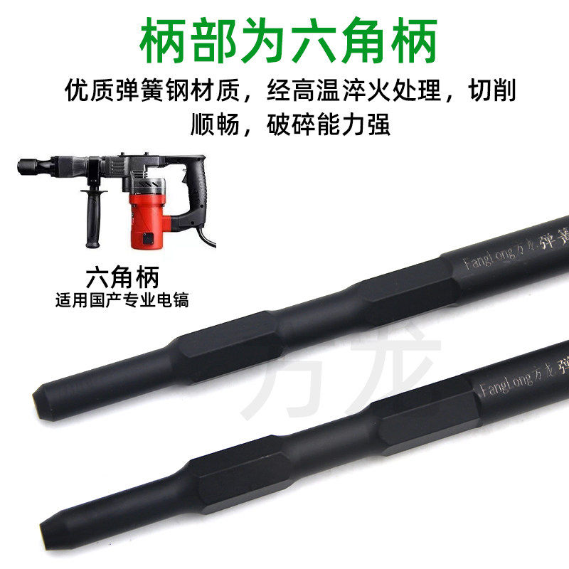 电镐加长加宽弹簧钢扁凿子电搞锤铲头冲击打混凝土六角柄开槽钻头