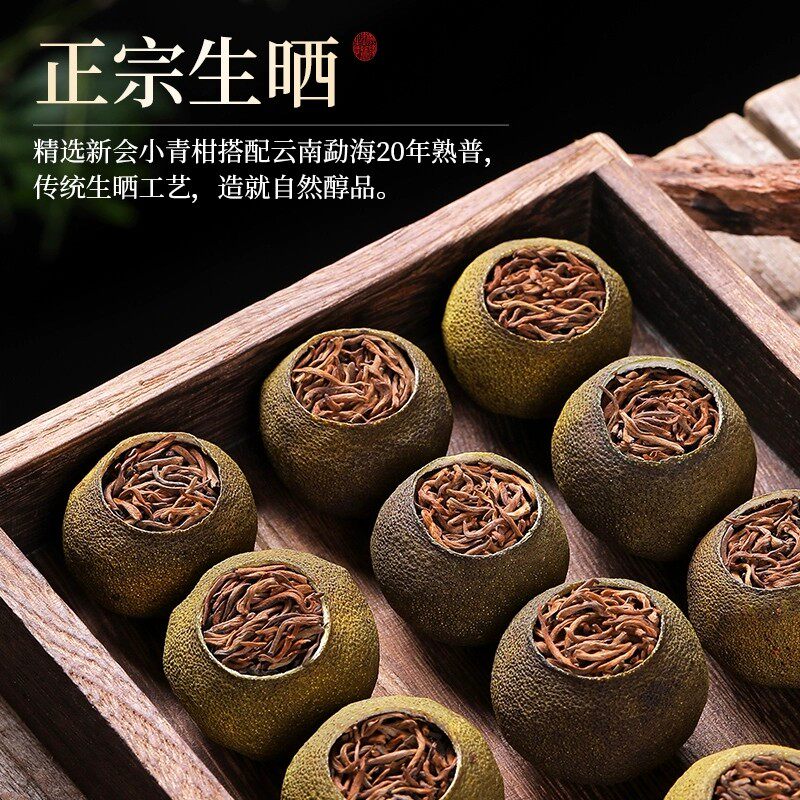 新会小青柑普洱茶特级正宗云南古树熟茶生晒陈皮柑普茶叶礼盒罐装