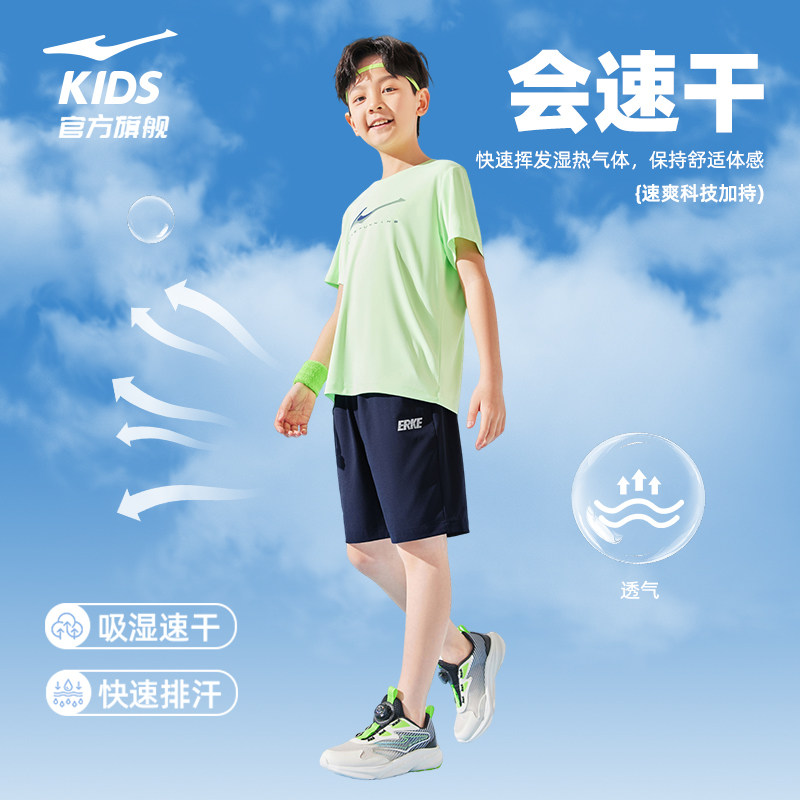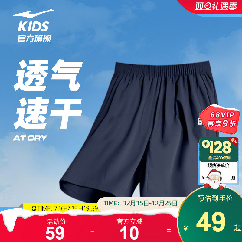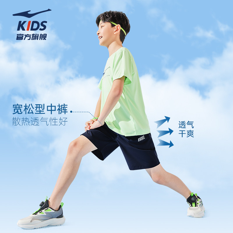 鸿星尔克童装男童运动短裤新款休闲运动裤夏季透气弹力儿童五分裤