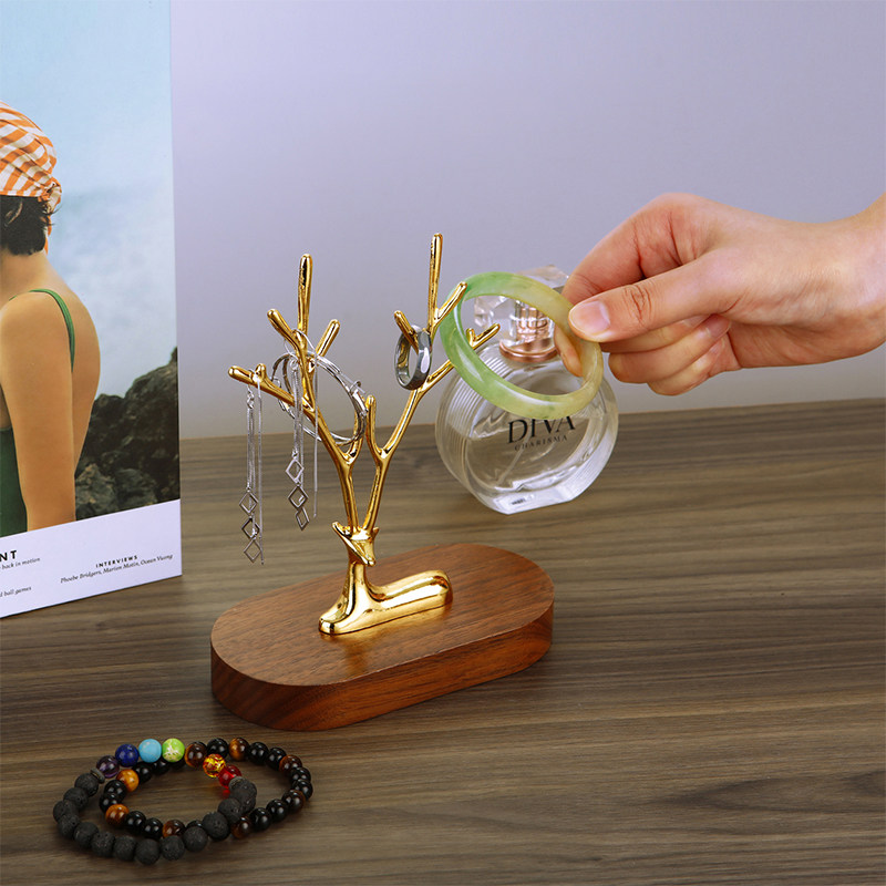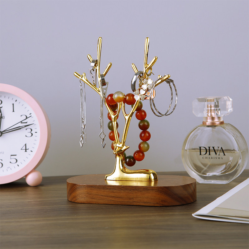 胡桃木首饰架小鹿饰品展示架家用门店柜台项链手链手环戒指收纳架