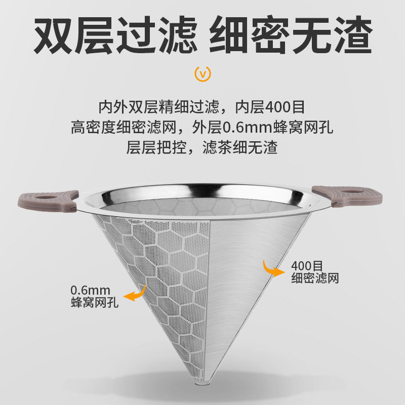 奶茶店专用304不锈钢奶茶桶双耳茶叶过滤网滤茶器大号超细网茶漏