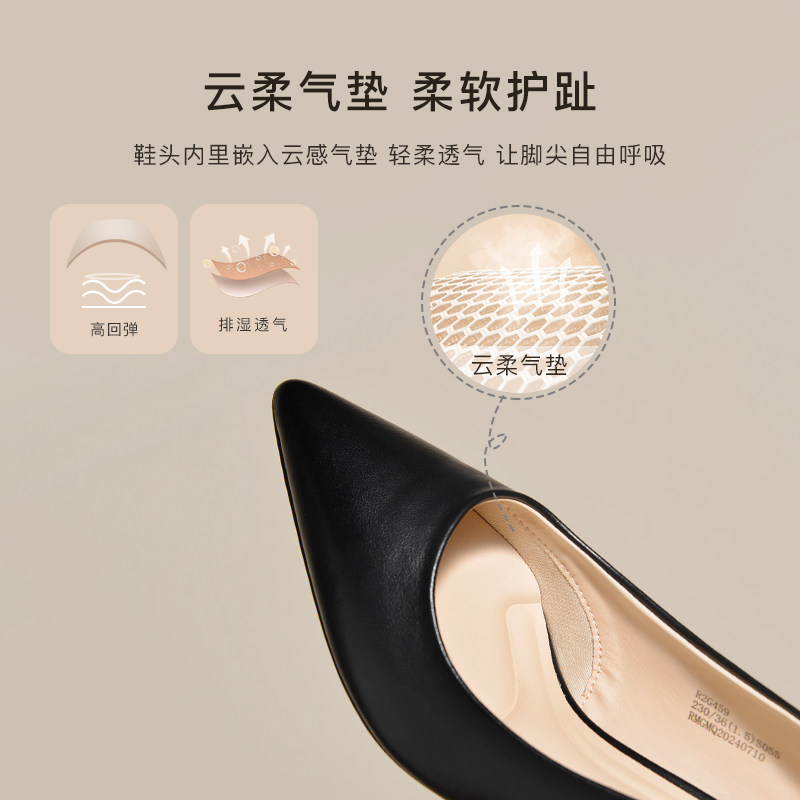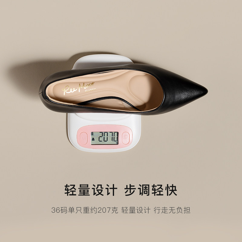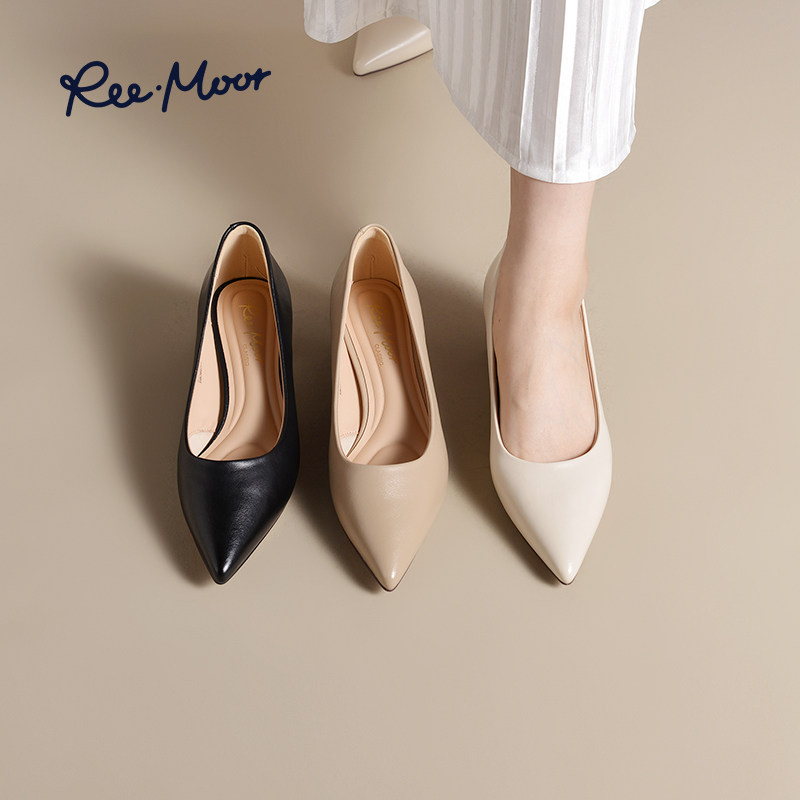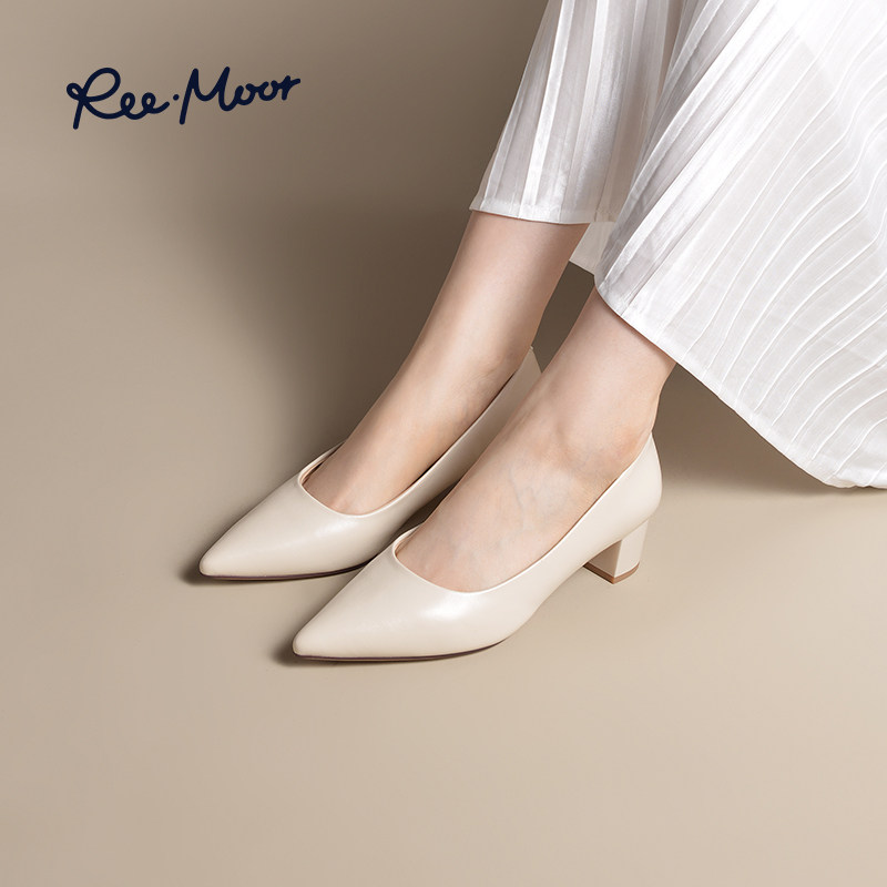 REEMOOR睿慕2025秋季新款通勤简约尖头跟鞋法式浅口粗跟单鞋女鞋