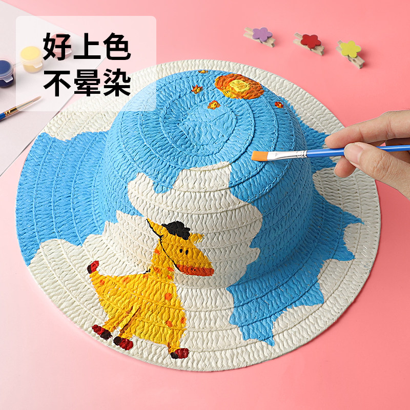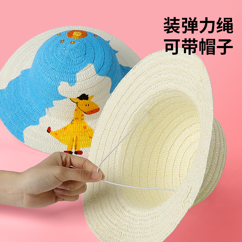 儿童绘画涂鸦草帽DIY手工材料幼儿园墙面装饰创意手工彩绘帽子