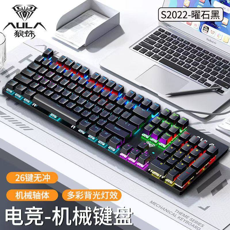 狼蛛S2022机械键盘有线单键盘发光USB学生办公电竞游戏青轴批发