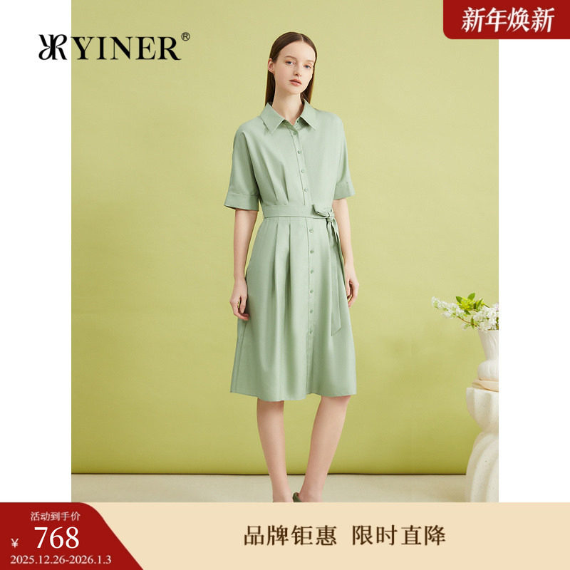 YINER音儿专选夏季法式优雅小清新系带收腰衬衫式连衣裙