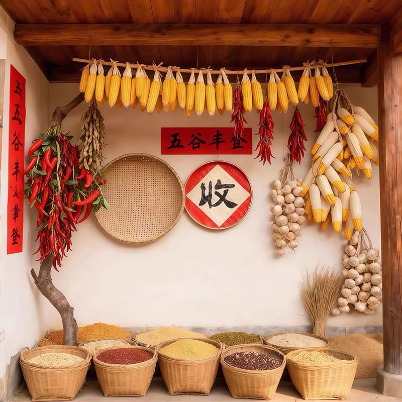 直播间背景墙布乡村五谷丰收辣椒玉米农产品主播带货旧房子拍照布