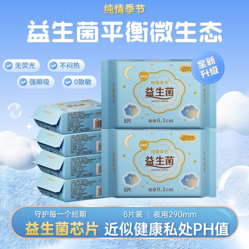 益生菌卫生巾日夜组合贴心亲肤绵柔呵护超薄干爽夜用日用季节