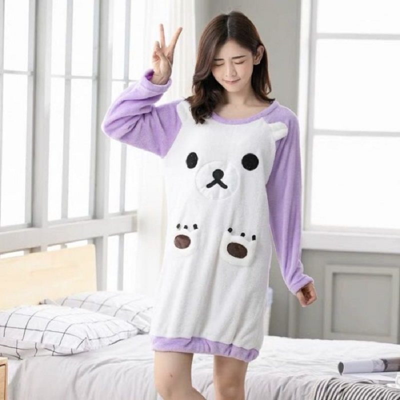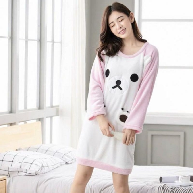 ubras贴贴系列|奶酪绒睡裙长袖睡衣抗菌女款衬衫裙子印花秋冬款