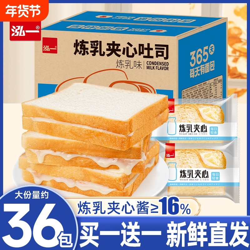 泓一炼乳夹心吐司面包早餐速食整箱健康零食蛋糕点学生营养食品