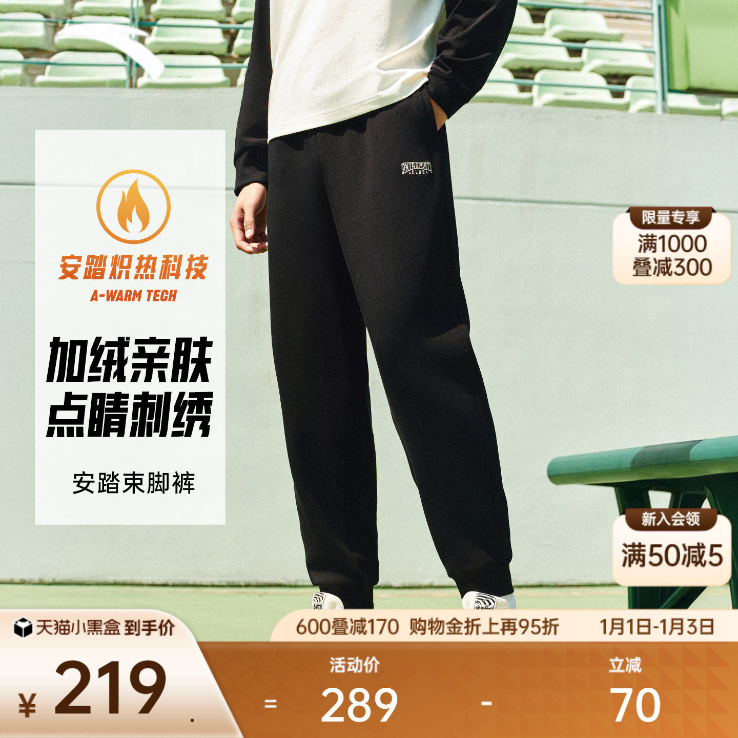 安踏运动卫裤男士2025冬季新款美式百搭加绒针织长裤子152548305