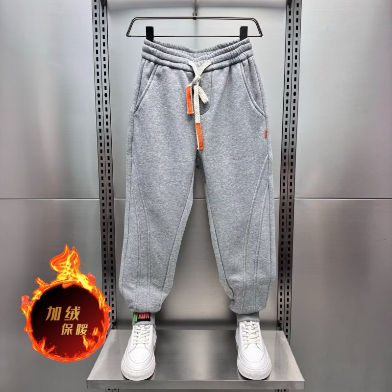 加绒卫裤男秋冬厚款束脚休闲裤痞帅百搭白色运动裤男士宽松哈伦裤