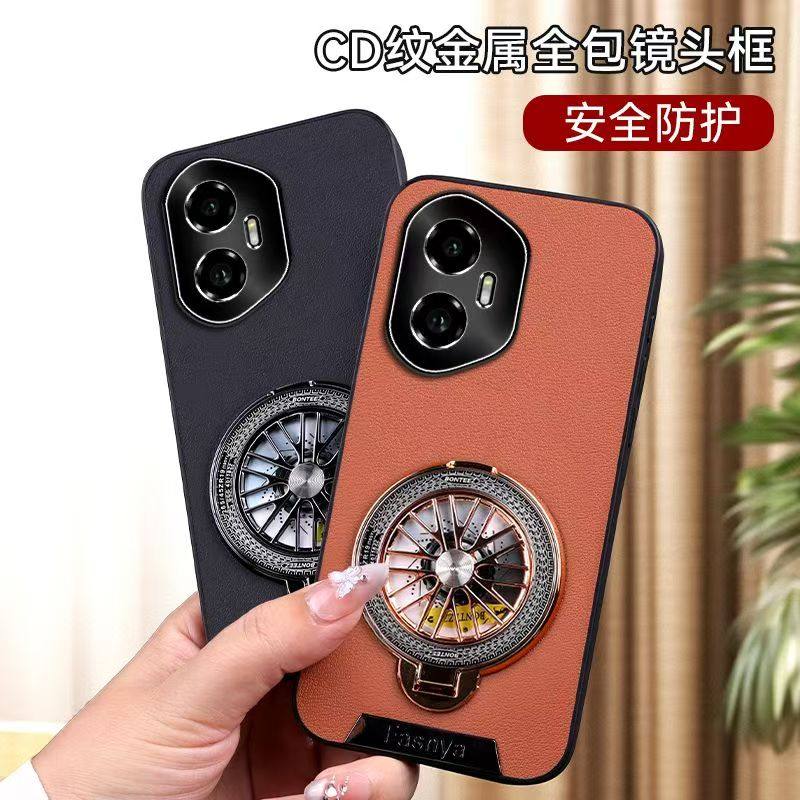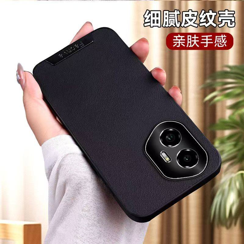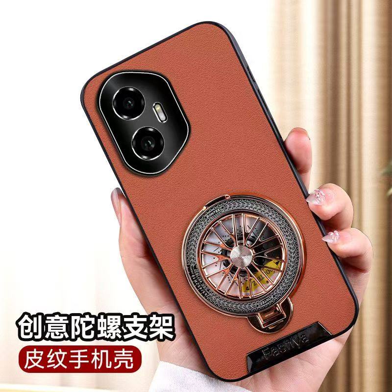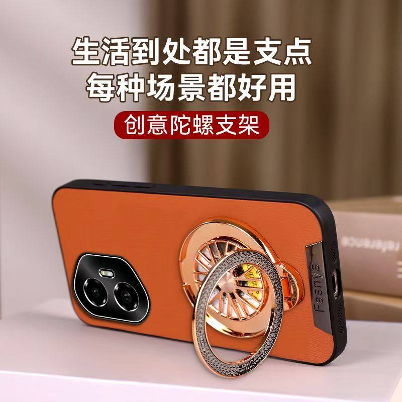 适用华为荣耀300pro手机壳曲面新款陀螺支架honor300素皮硅胶保护套ultra真皮感磨砂防滑男女高档防摔软壳薄