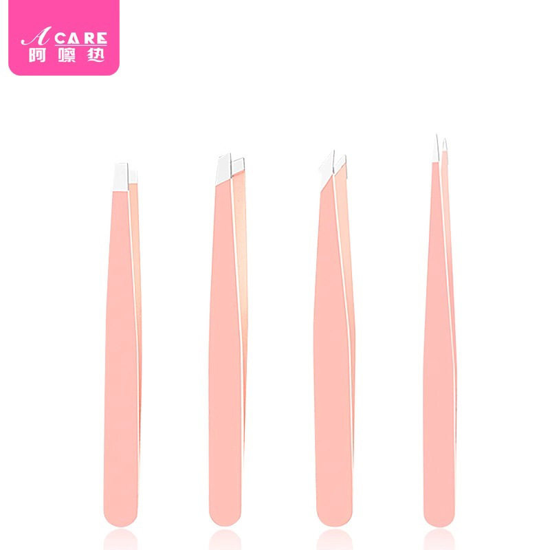 眉夹C1pf0-浅粉色镊子拔毛眉毛假睫毛夹子修眉钳拔毛拔勾嘴平口