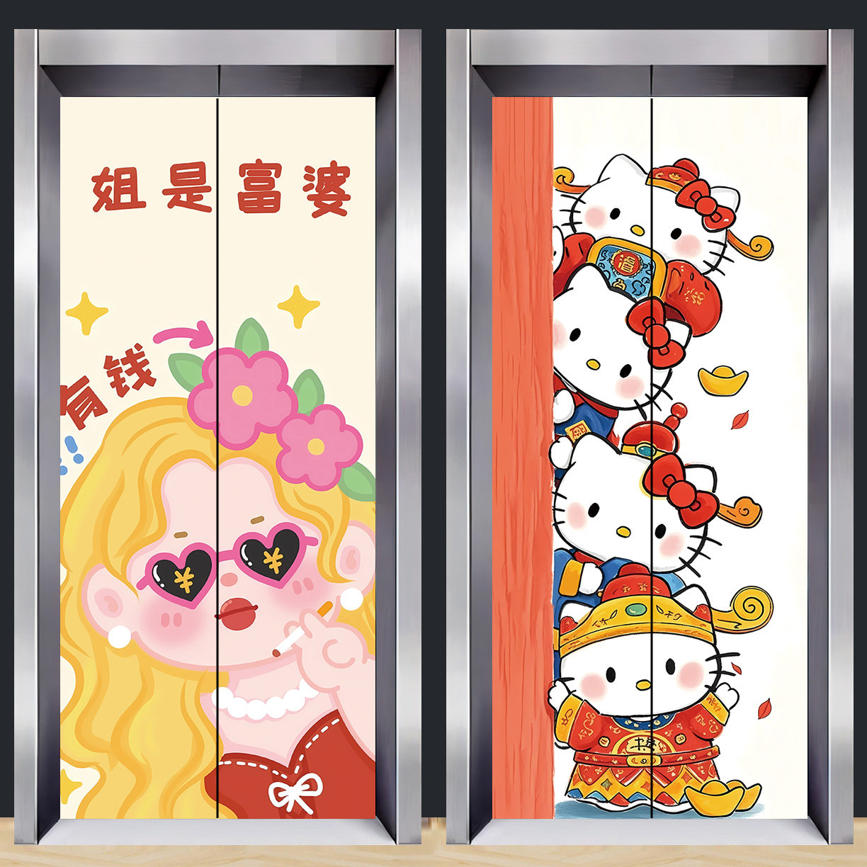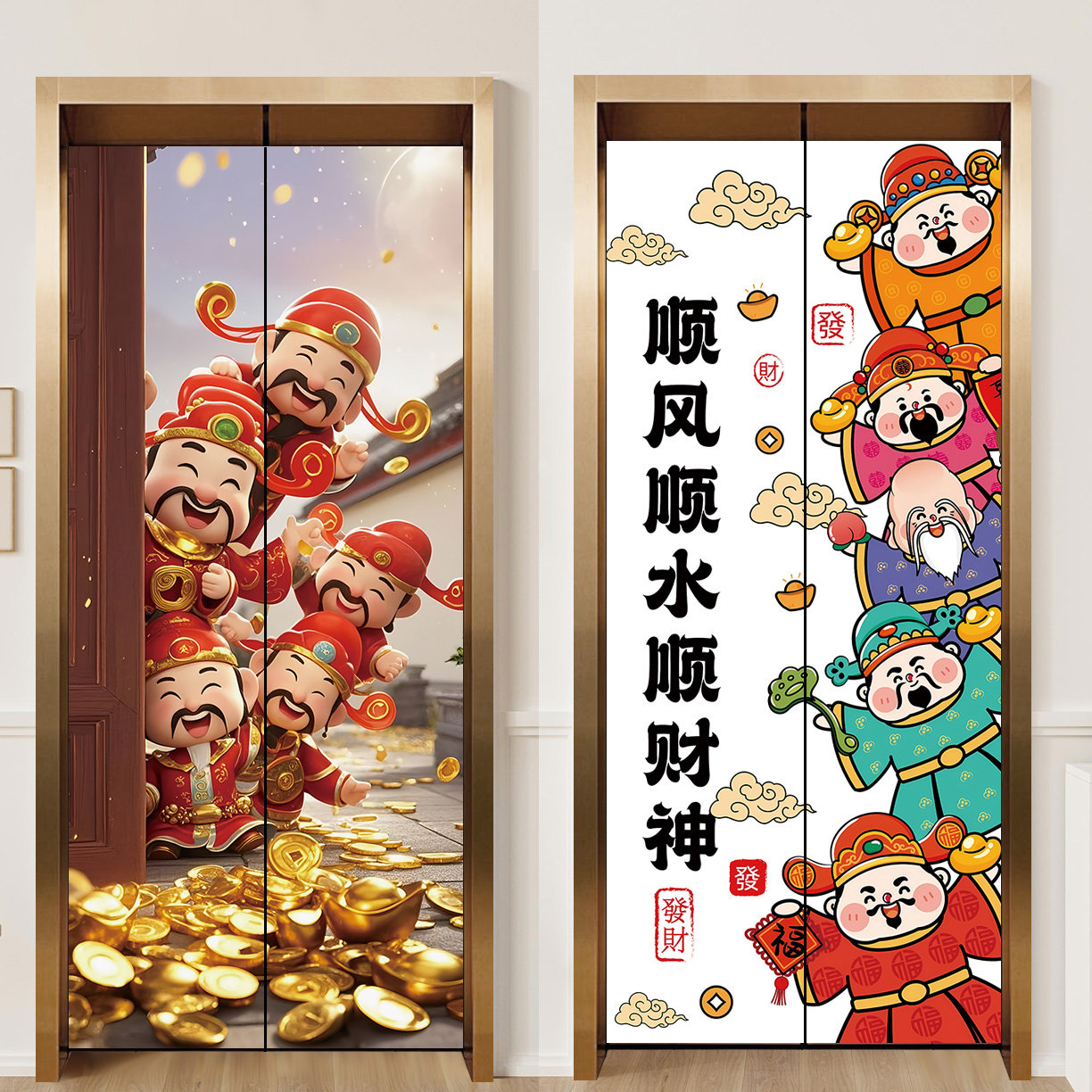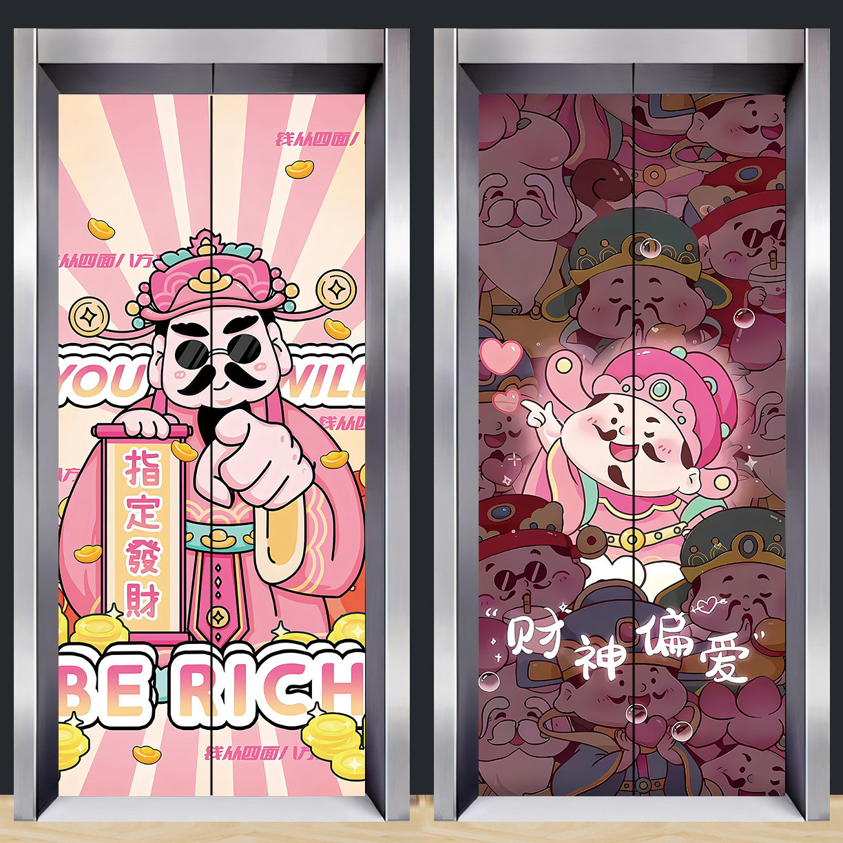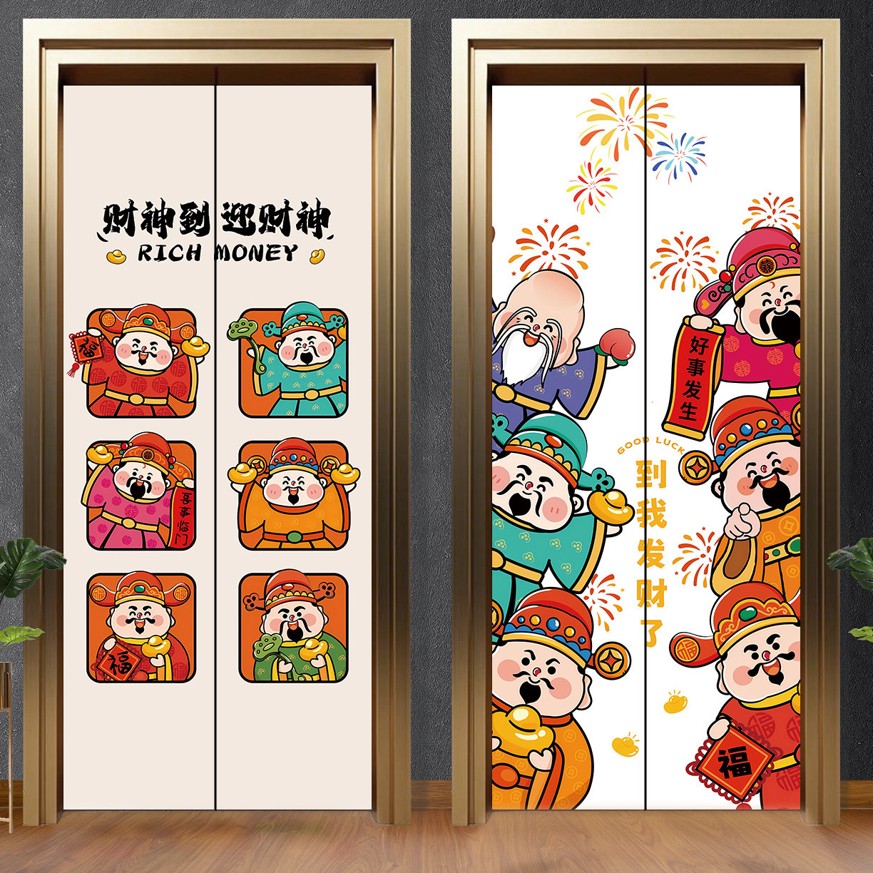 新款卡通财神爷入户电梯门贴纸高级感加厚贴画一梯一户门口装饰画