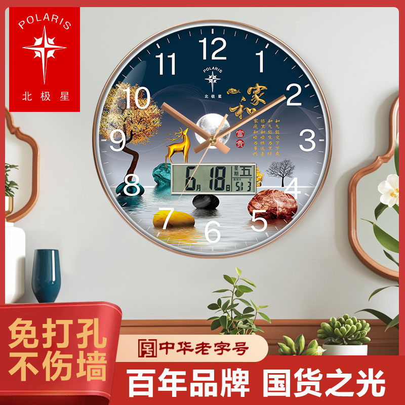 北极星创意静音挂钟万年历挂墙中国风客厅餐厅时钟挂表家用石英钟