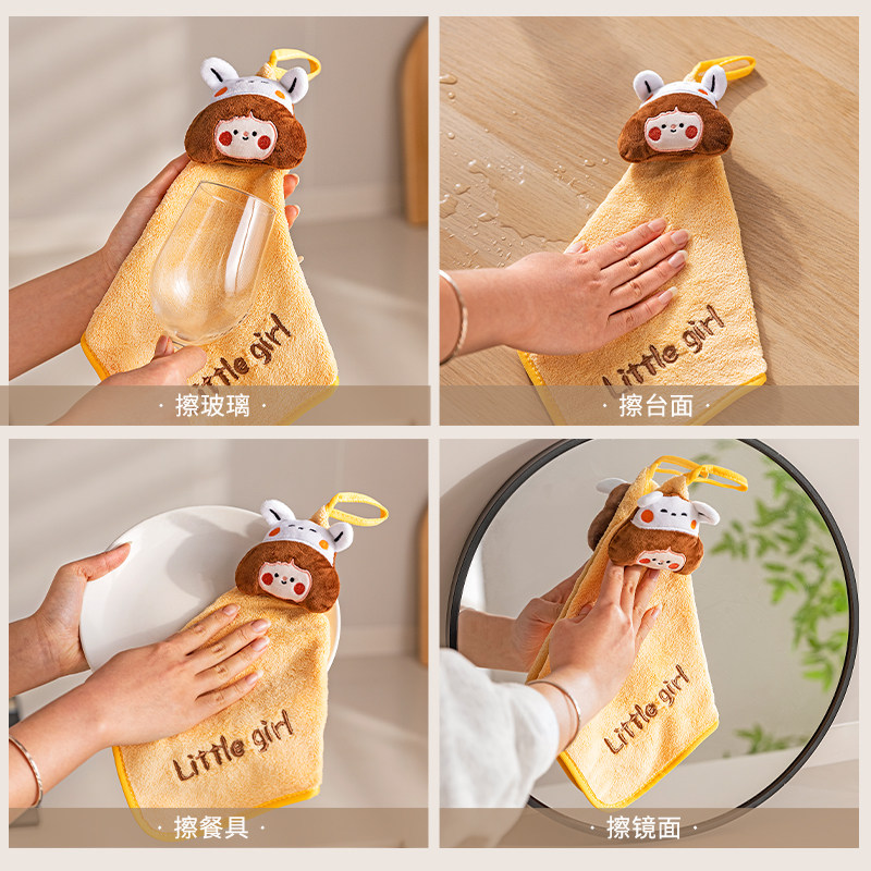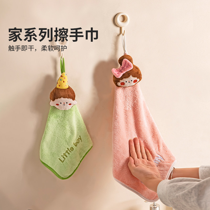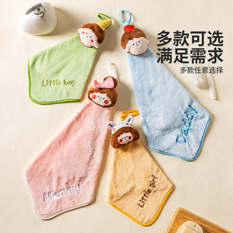 摩登主妇一家三口擦手巾挂式吸水速干珊瑚绒易清洗可爱儿童小方巾