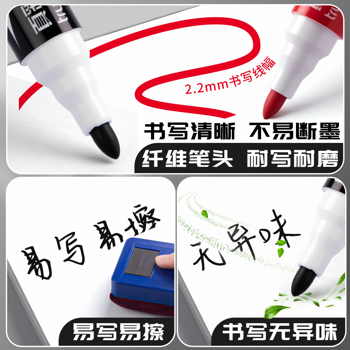 晨光可擦白板笔黑色速干顺滑大容量培训会议室教师书写白板专用笔儿童写字黑色蓝色红色可擦记号笔彩色大头笔