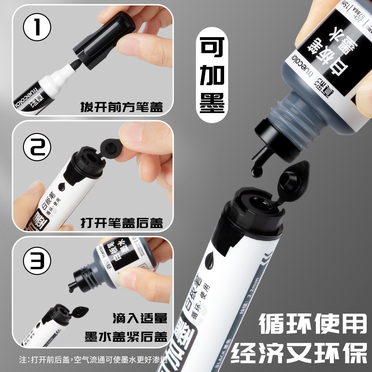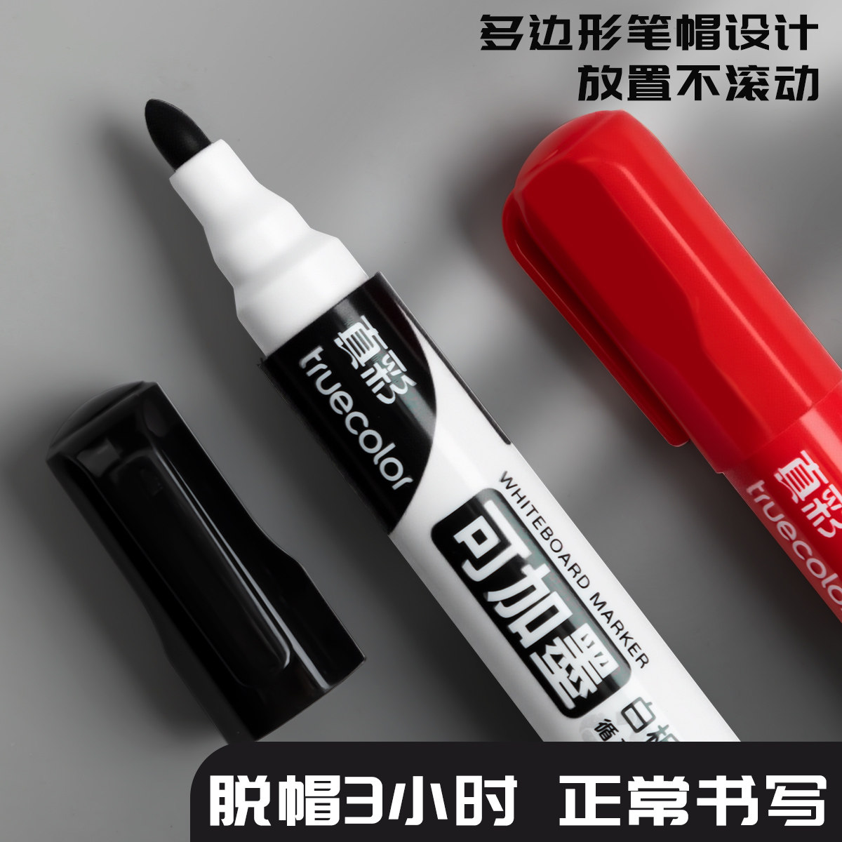 真彩白板笔可加墨水黑板笔水性可擦儿童无毒黑色记号笔白板教师用画板写字易擦写大容量粗头大头水笔红色蓝色
