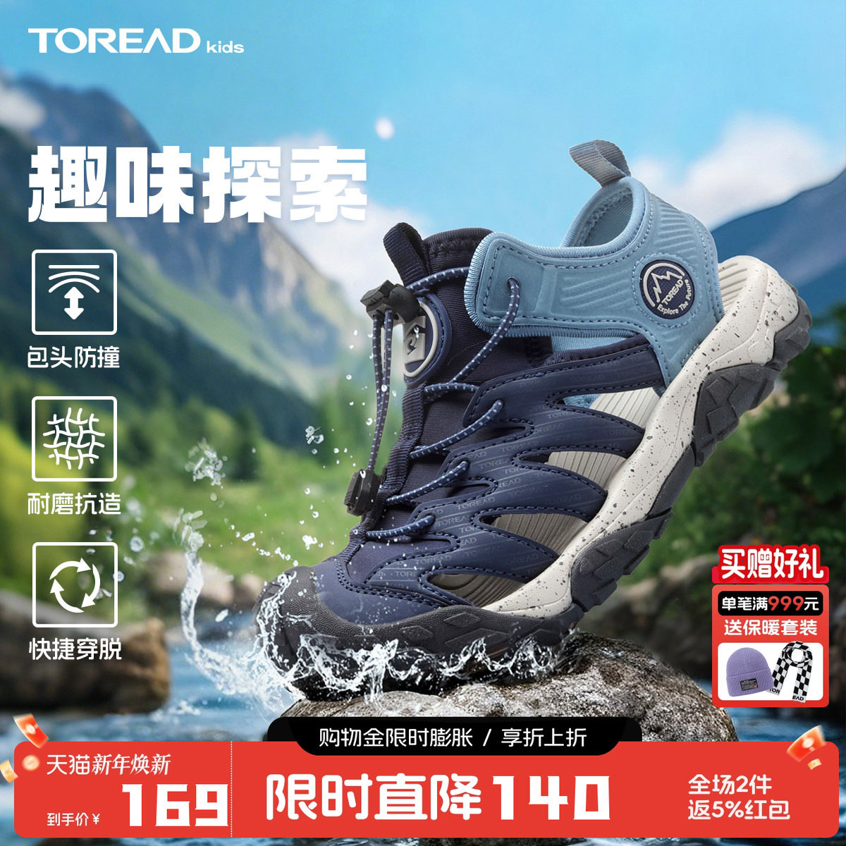 探路者儿童防滑包头抽绳凉鞋2025年新款男女童透气耐磨大底溯溪鞋
