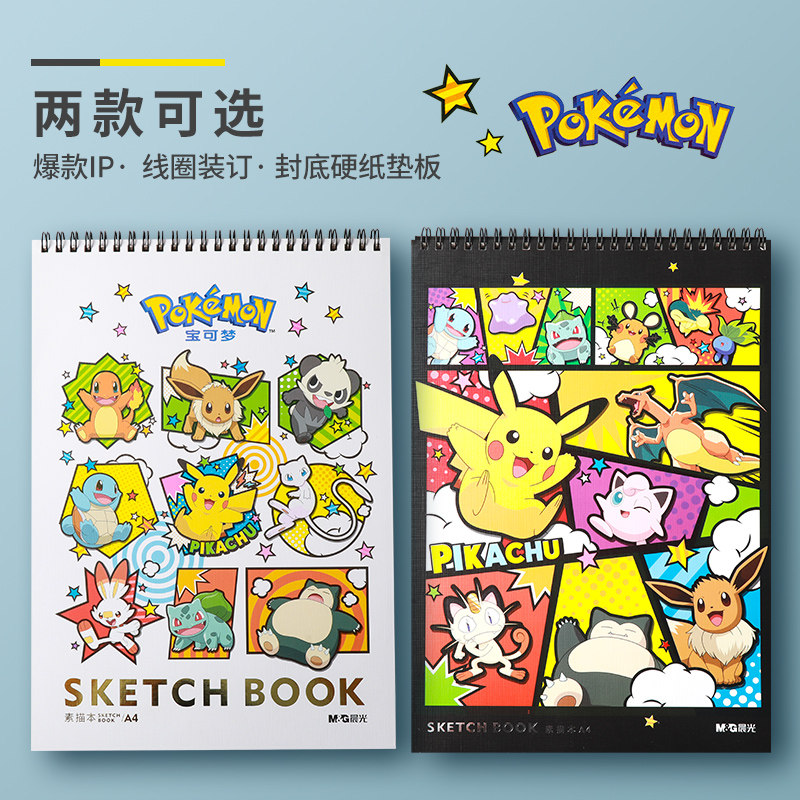 晨光宝可梦皮卡丘素描本画画纸图画本绘画速写本涂鸦马克笔专用美术本小朋友小学生手绘本a4空白儿童幼儿园