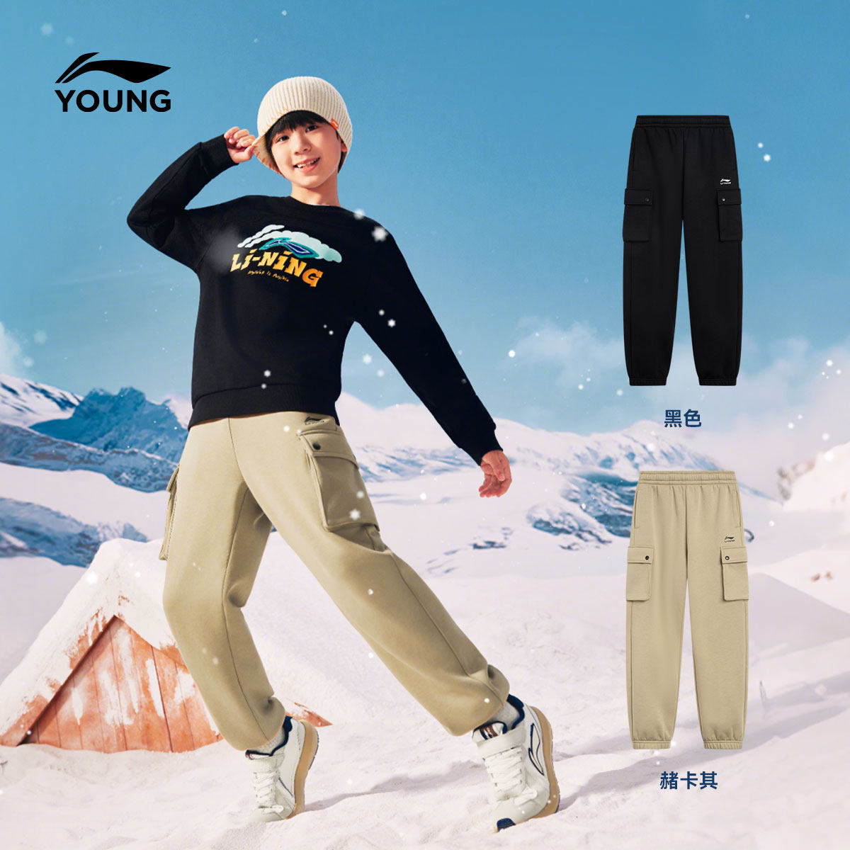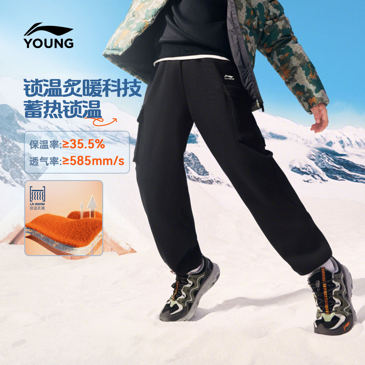 锁温科技|李宁儿童加绒卫裤棉裤男孩新款冬季男童装裤子运动冬装
