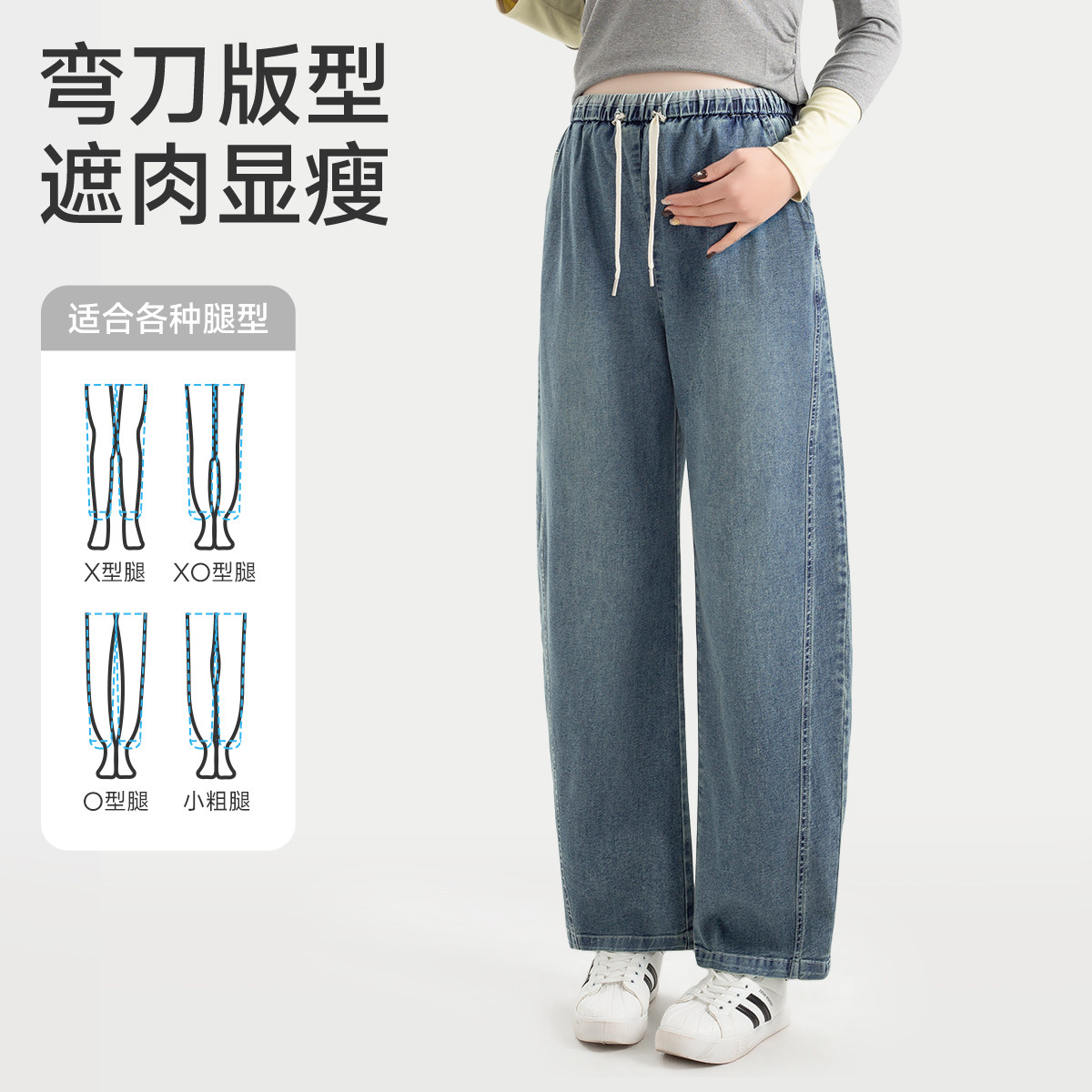 婧麒孕妇牛仔裤春夏2026新款小个子外穿弯刀阔腿裤不勒肚子孕妇装
