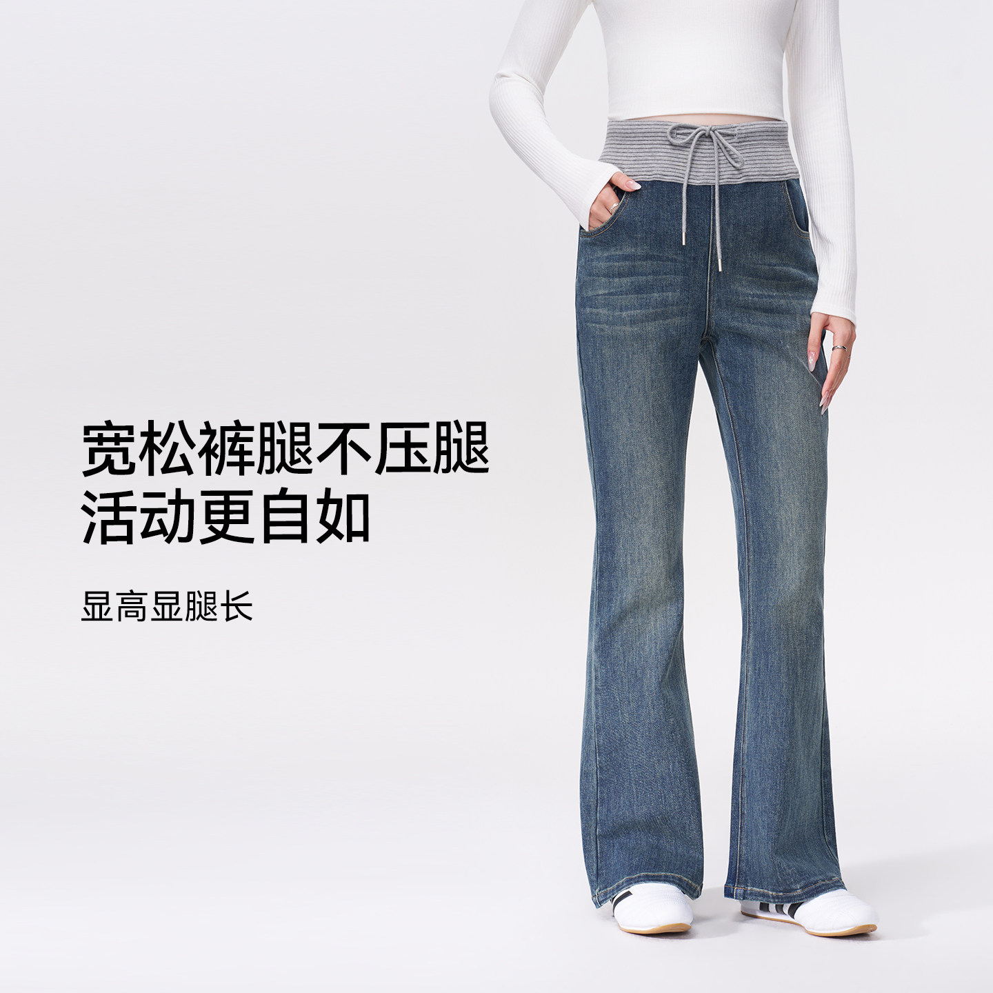 孕妇裤春秋款加绒外穿2026新款无托腹丹宁蓝牛仔裤不勒肚子阔腿裤