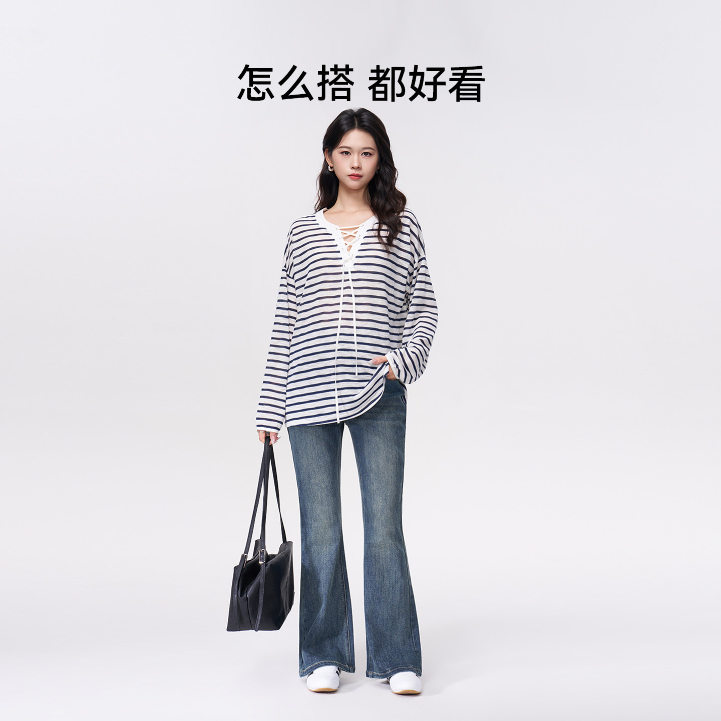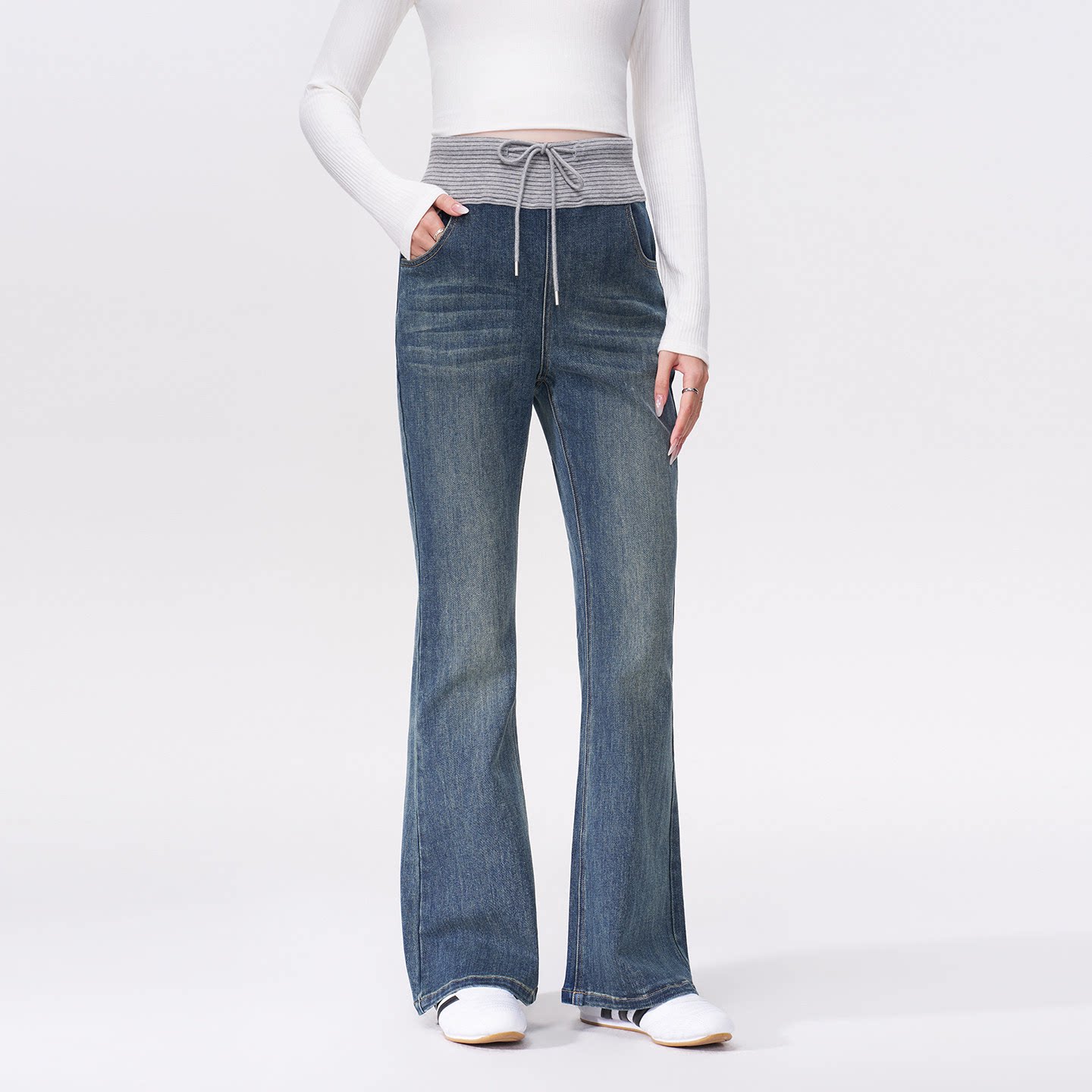 ELLIELUKE孕妇微喇牛仔裤春夏外穿长裤春装复古拼接裤头喇叭裤春