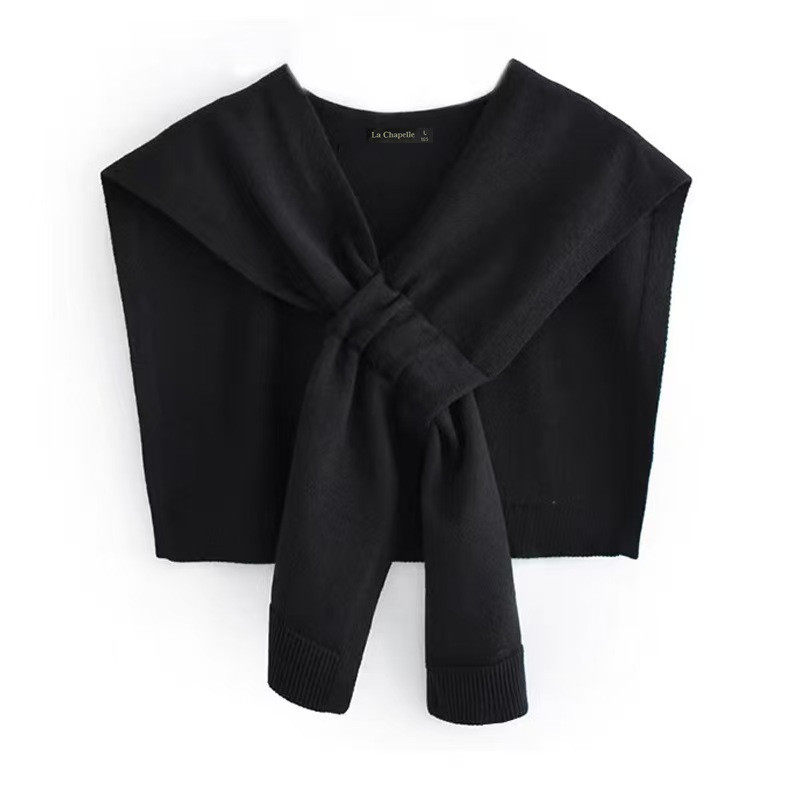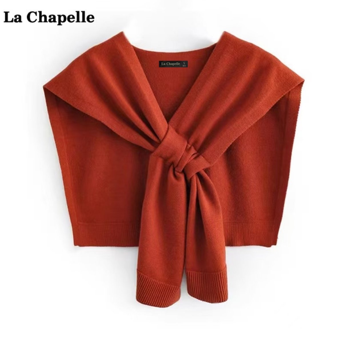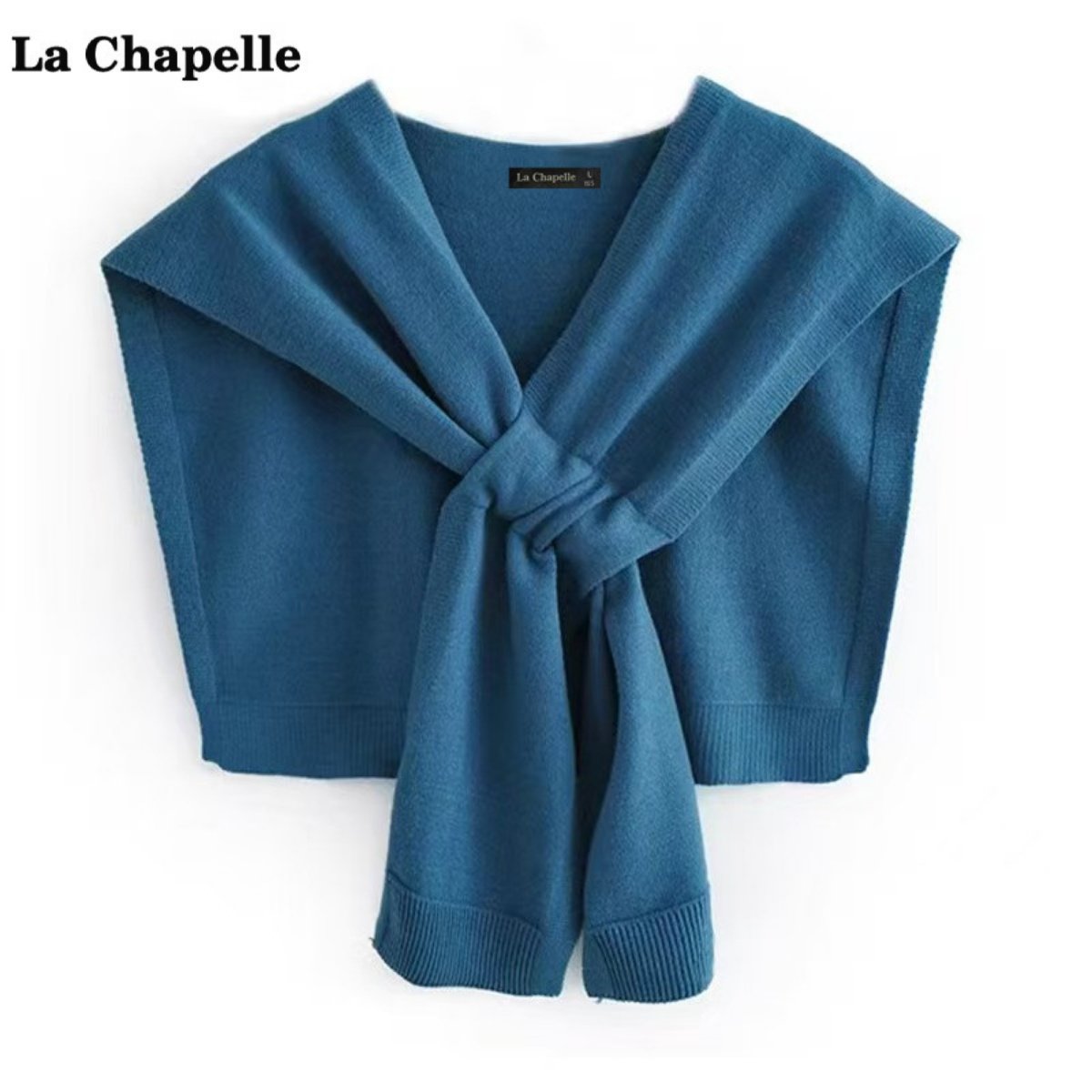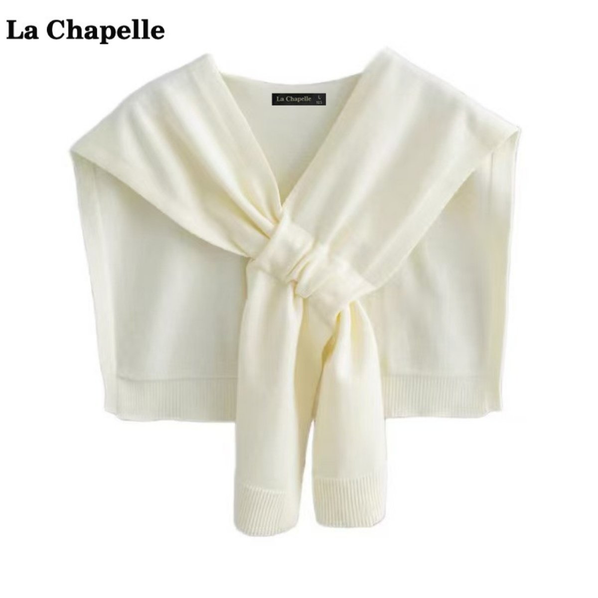 拉夏贝尔/La Chapelle针织披肩女韩版叠搭衬衫交叉款打结坎肩围巾