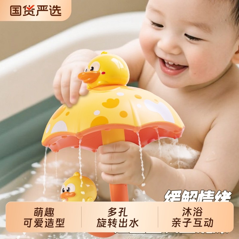 恐龙小鸭雨伞花洒会旋转出水戏水转转乐亲子儿童洗澡玩具浴室鸭子