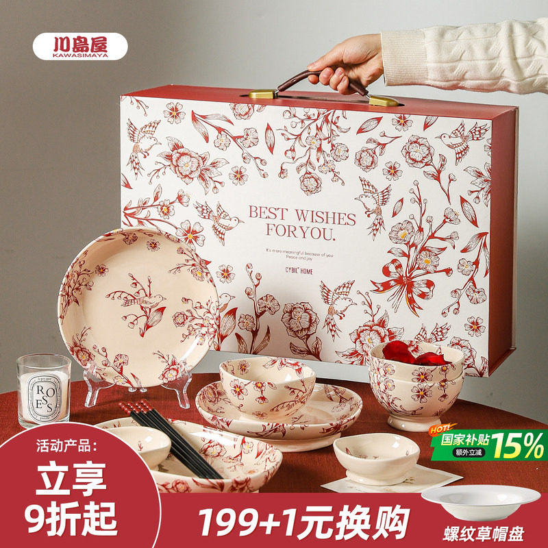 川岛屋新婚餐具套装礼盒轻奢高级陪嫁碗筷碗碟订婚结婚礼物送新人