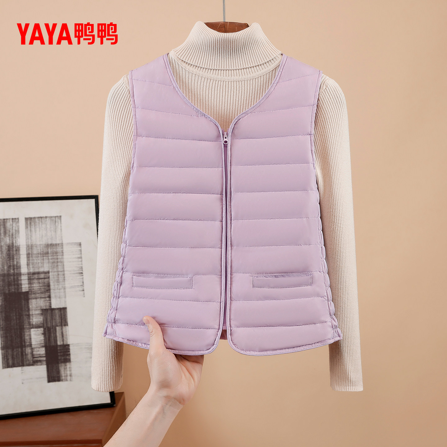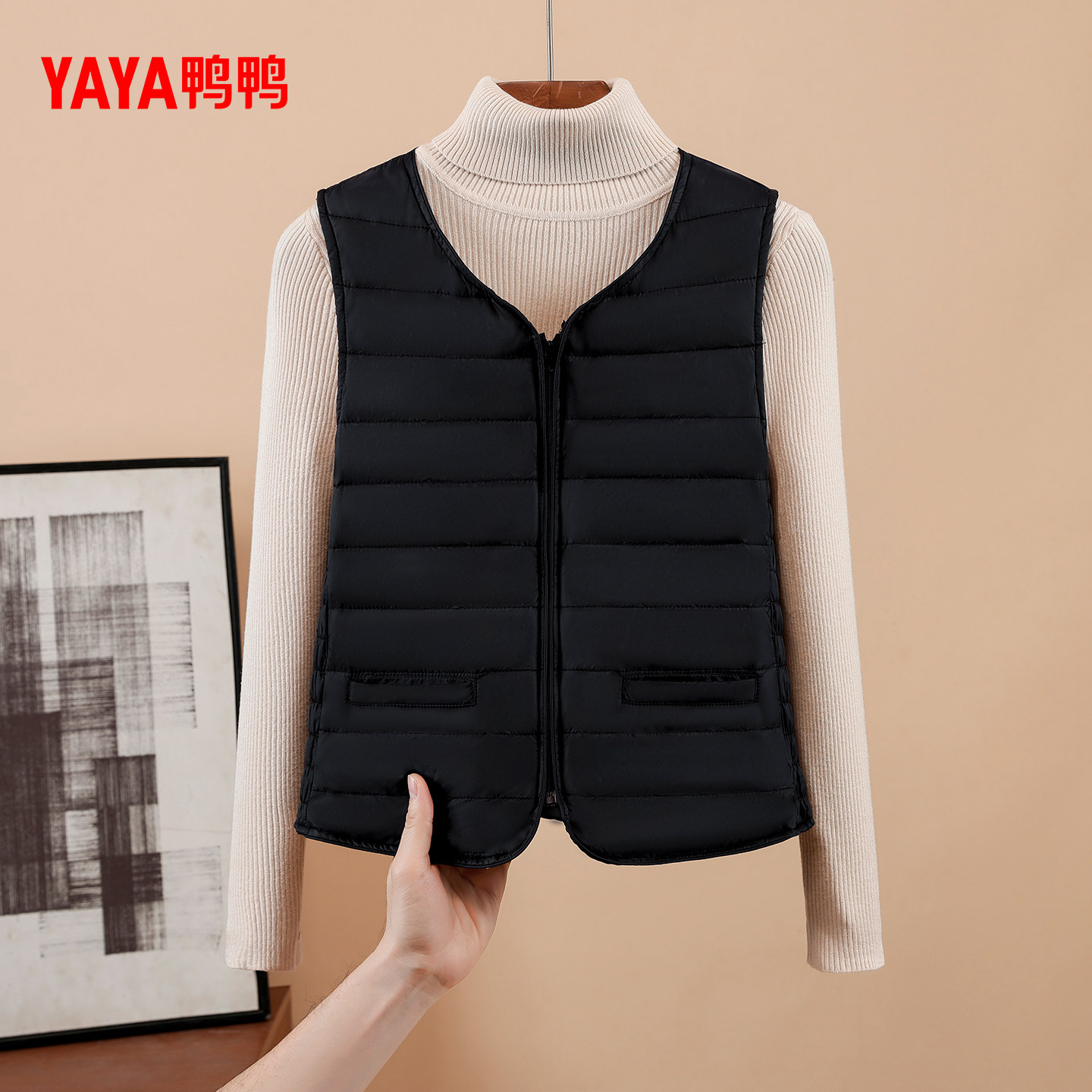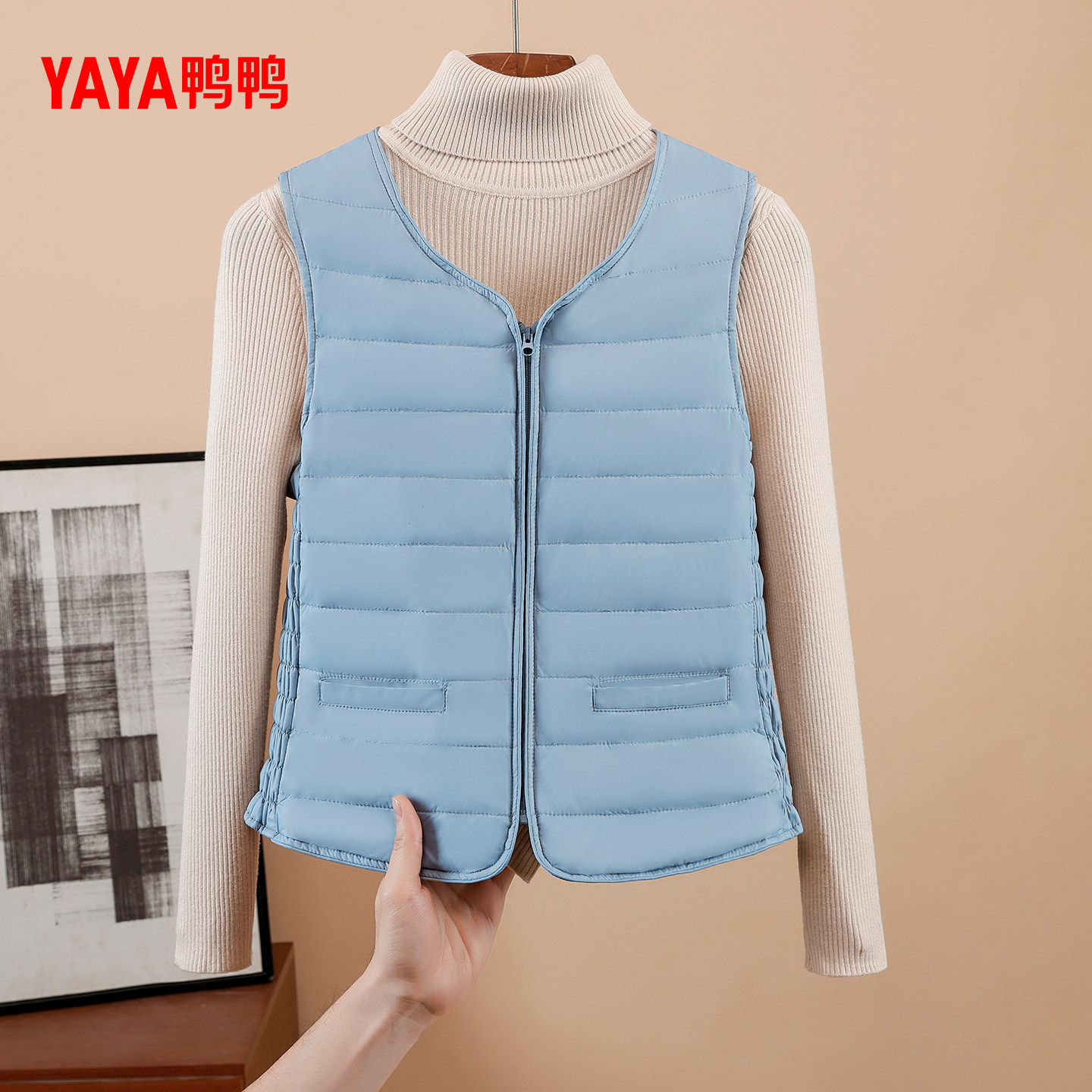 鸭鸭轻薄羽绒服马甲女V领反季基础修身背心休闲蓬松鸭绒马夹外套X