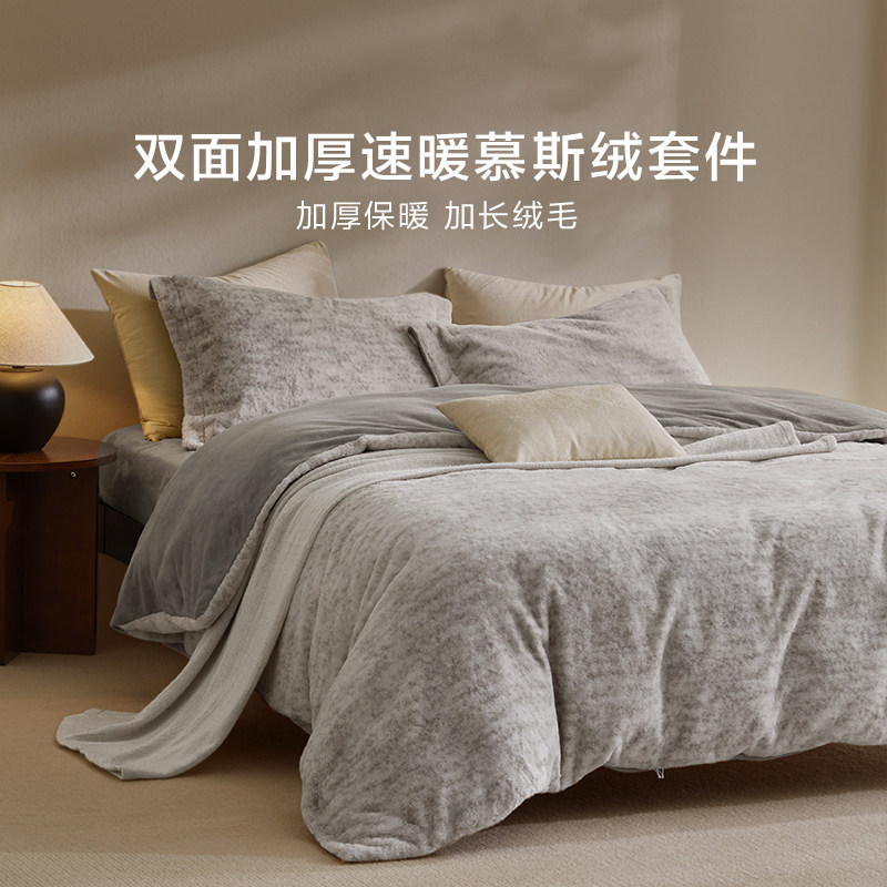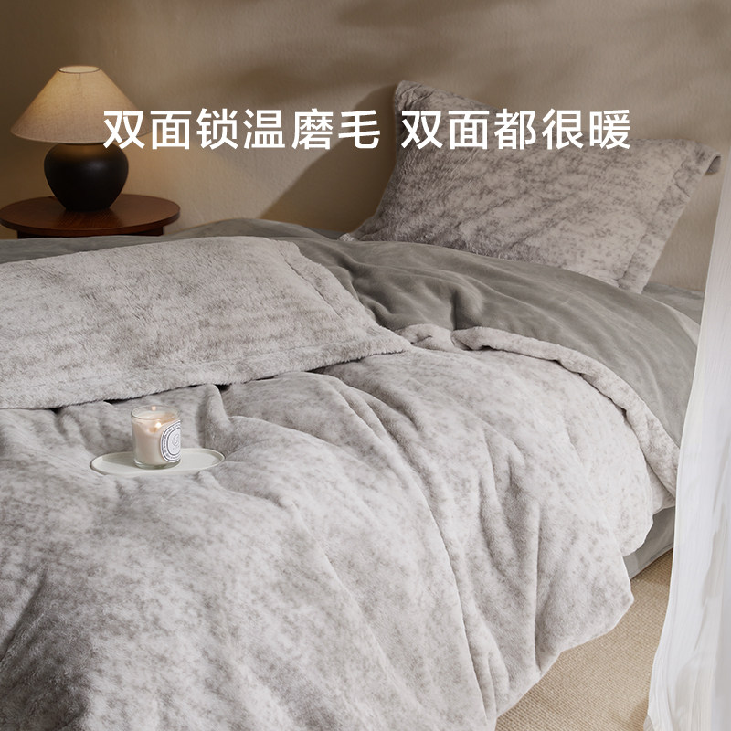 罗莱家纺25秋冬新品长毛绒慕斯绒双面暖绒加厚被套双人床四件套