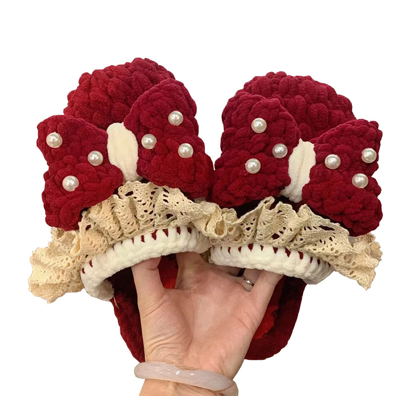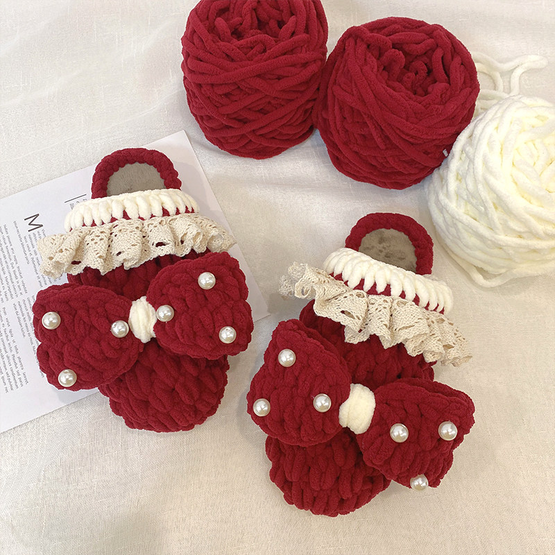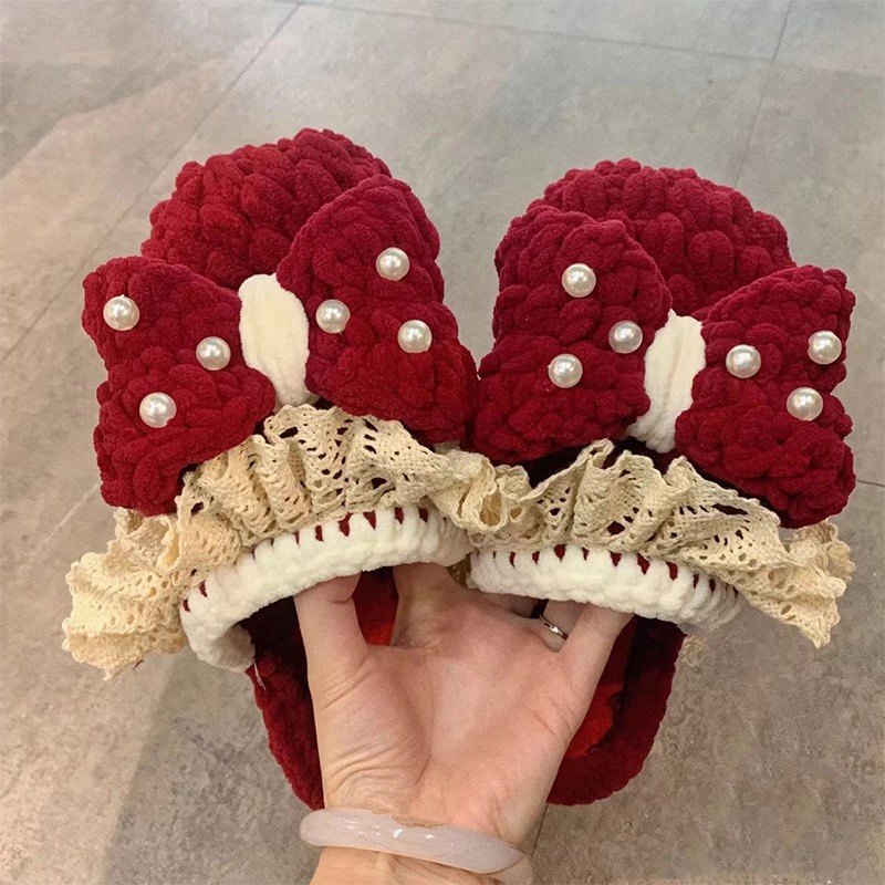 小红书同款送双拖鞋毛线钩织圣诞礼物手工diy编织蝴蝶结红色绿色