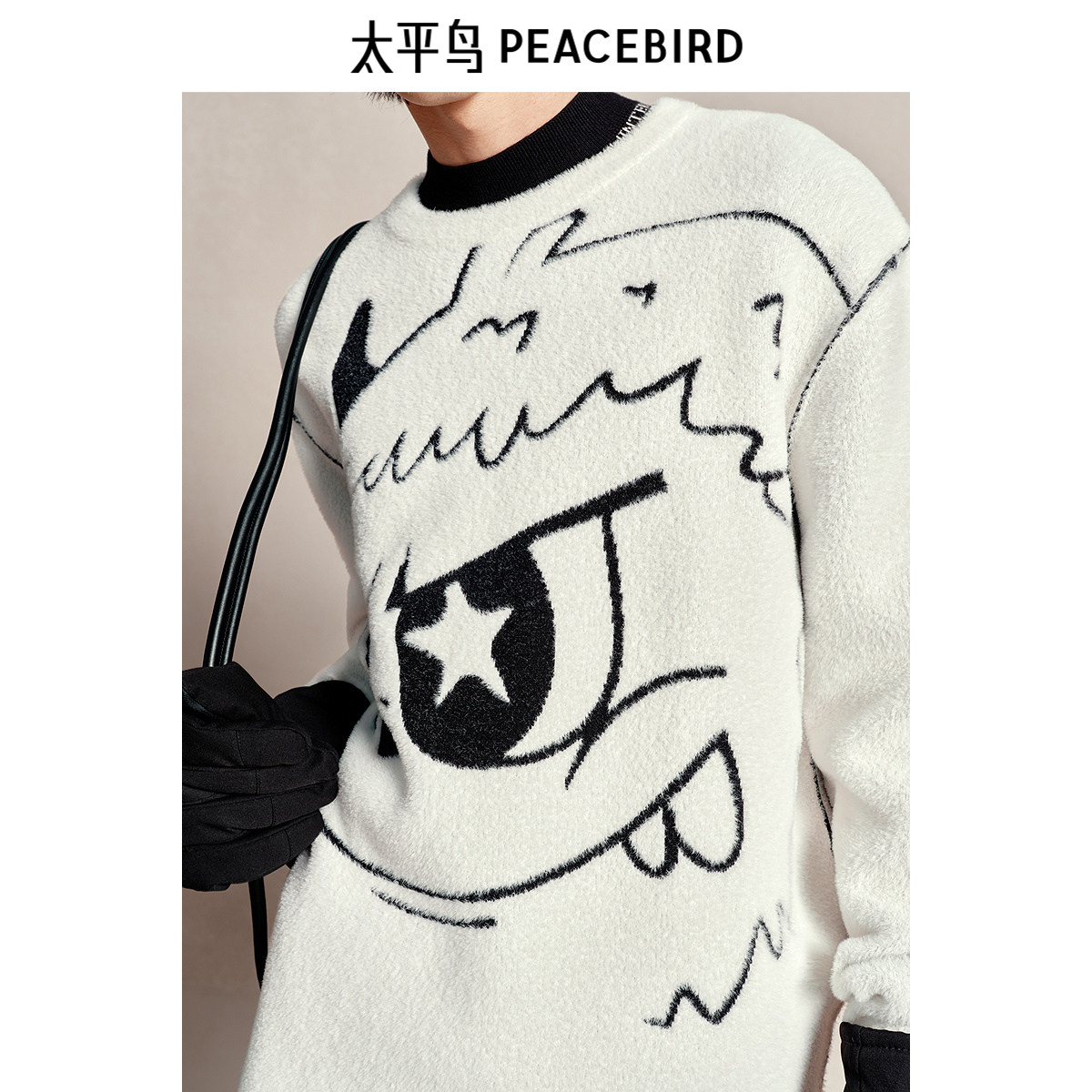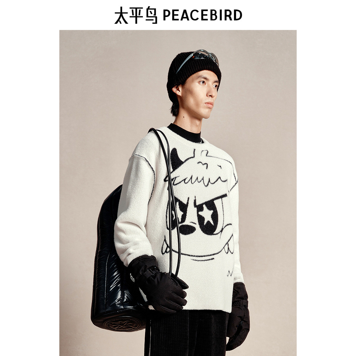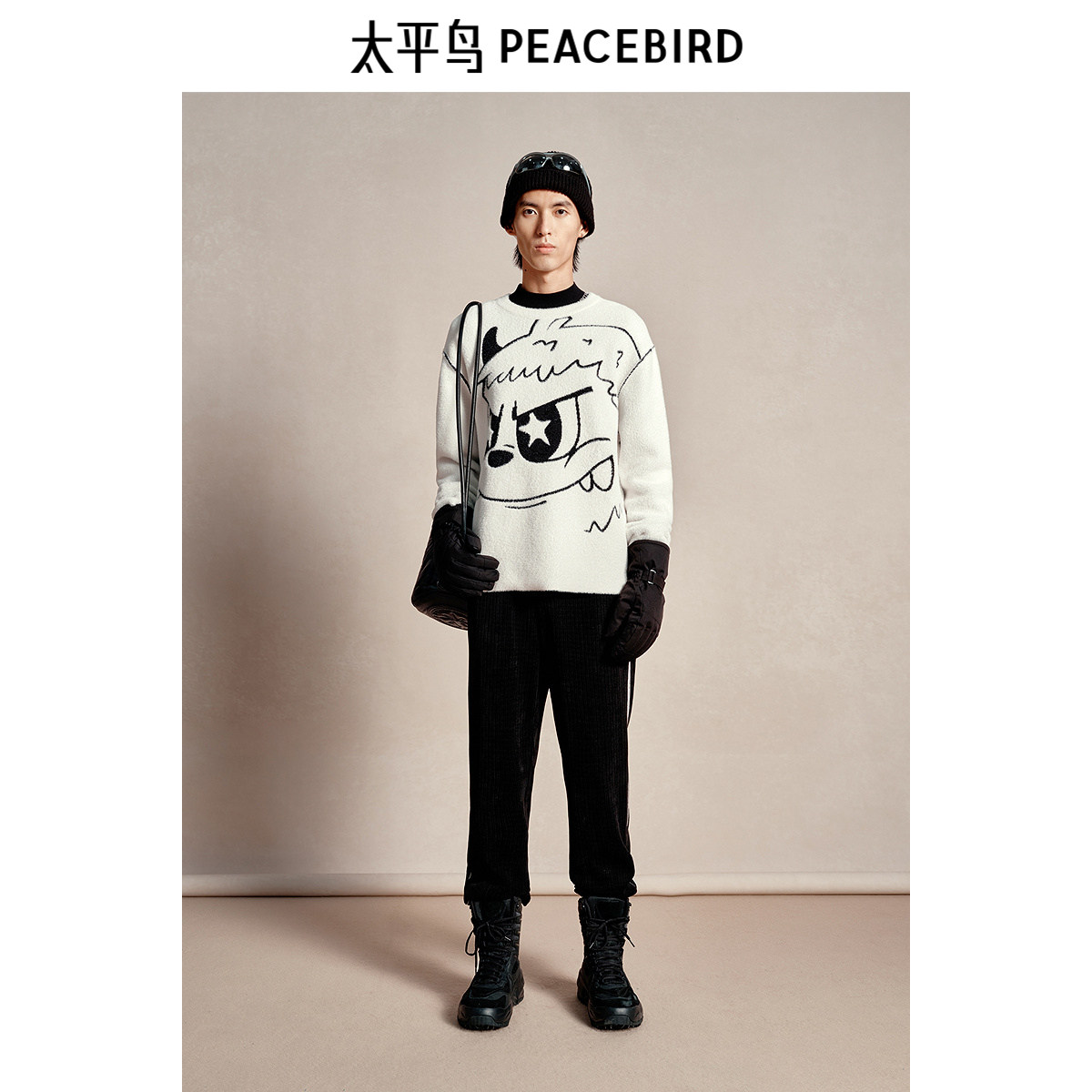 太平鸟男装 冬季圆领针织衫毛衣卡通图案款宽松休闲圆领毛衣潮