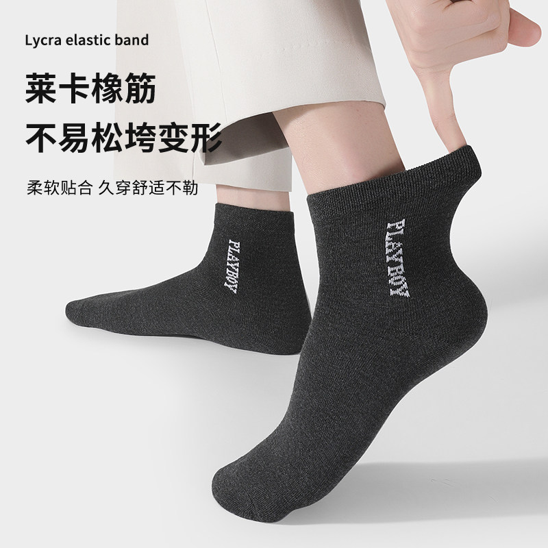 PLAYBOY/花花公子袜子短袜男士吸汗防臭7a抗菌中筒袜男生抑菌高筒