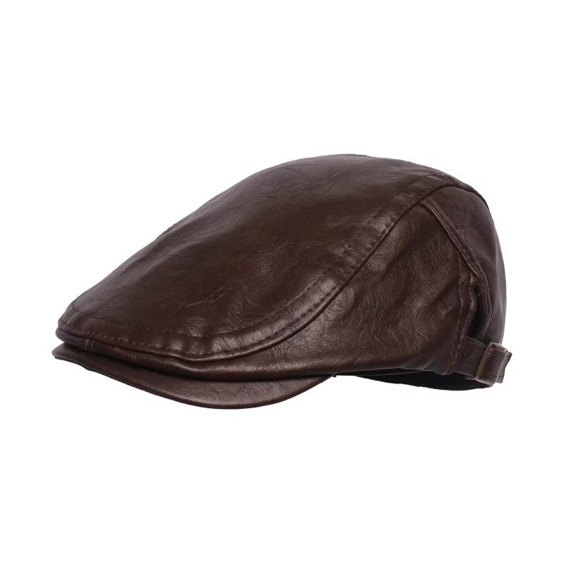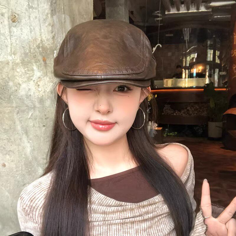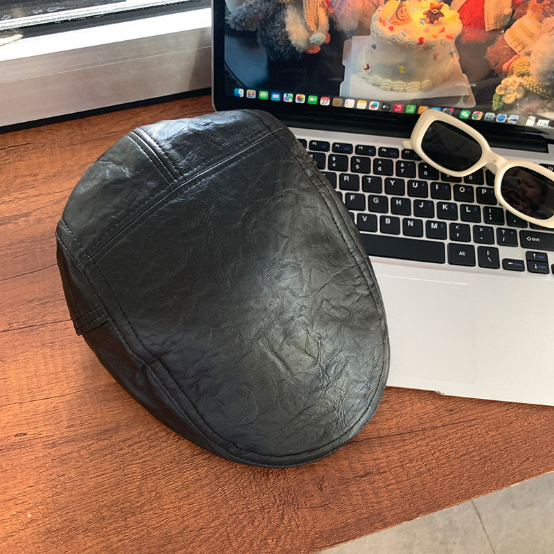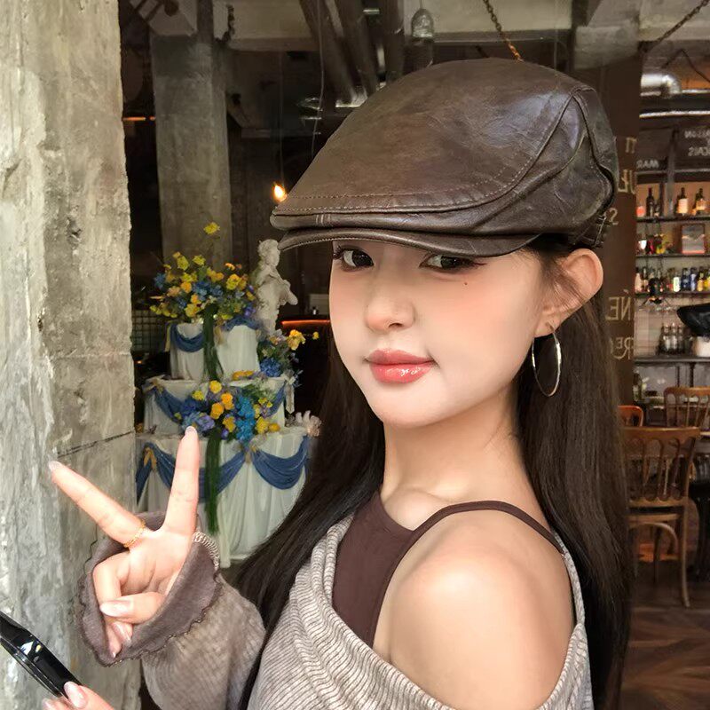 复古pu皮质前进帽男女秋冬时尚英伦风报童帽街头时髦个性画家帽子