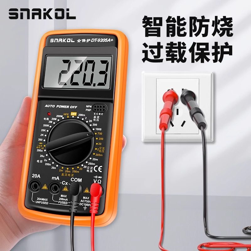 斯耐科高精度DT9205A防烧数字万用表全保护大屏数显万能表电容