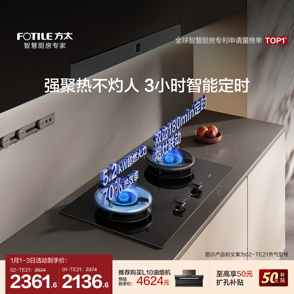 [空气舱新品]方太02-TE21双灶定时燃气灶煤气天然气家用官方旗舰