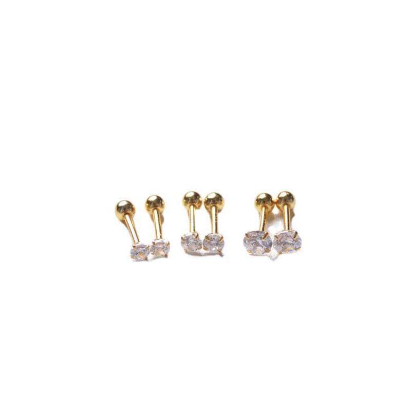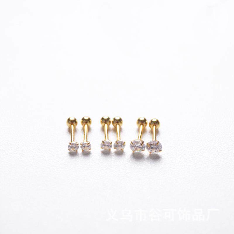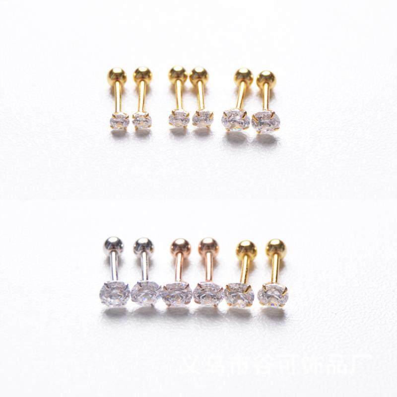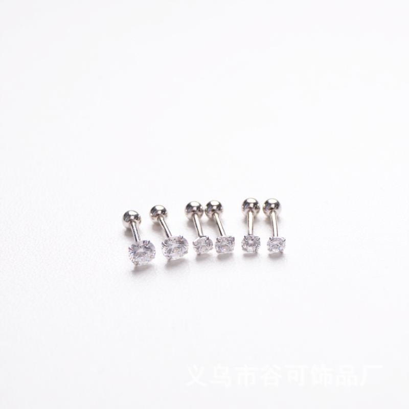 S925纯银螺纹圆球球睡觉不摘简约四爪锆石耳钉耳骨钉耳蜗耳饰