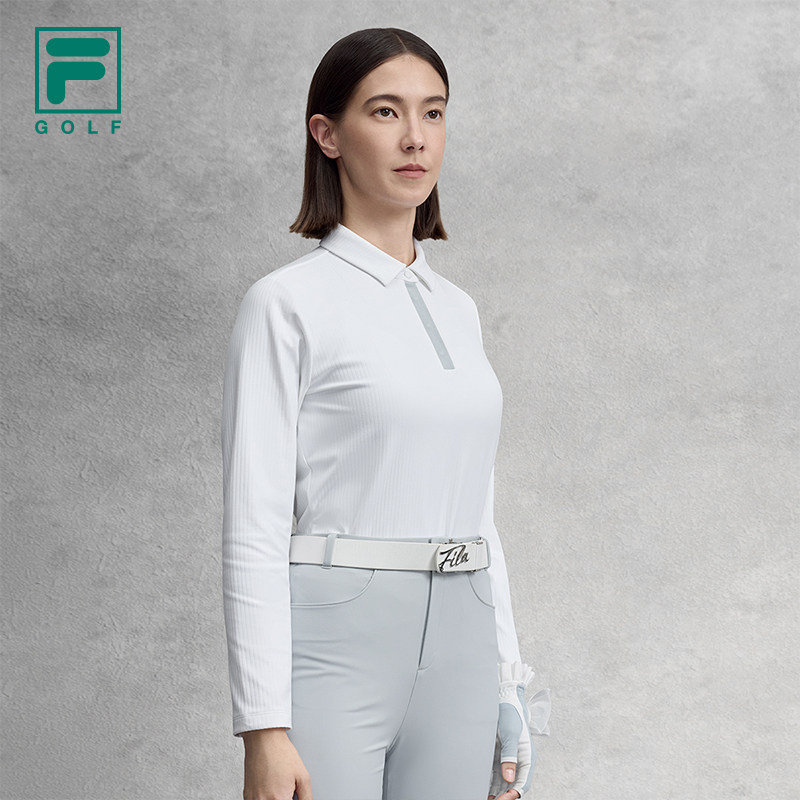 FILA 斐乐官方女子针织长袖POLO衫2025冬新款高尔夫运动基础上衣