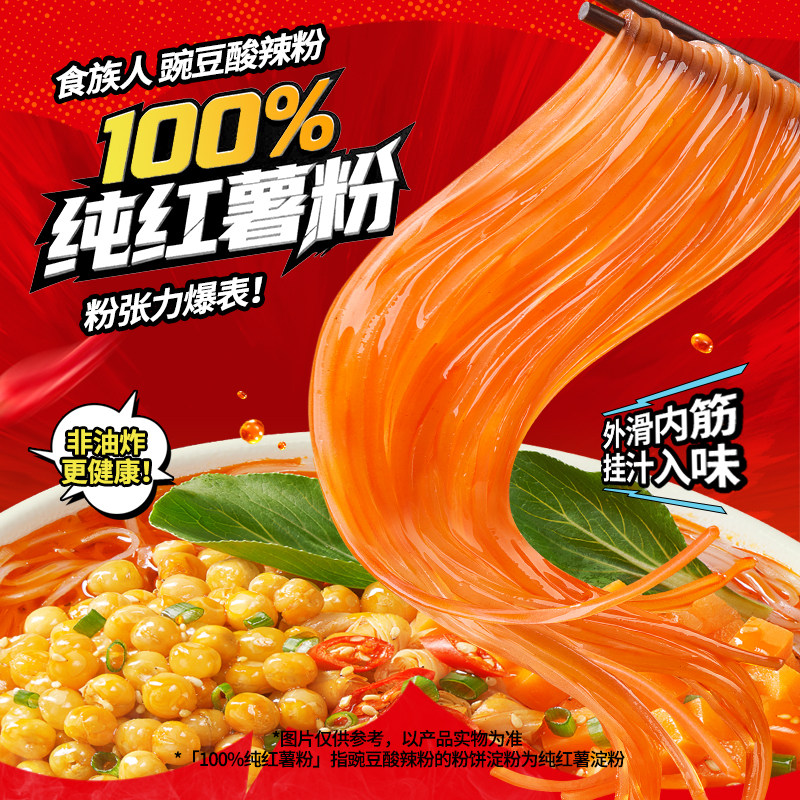 【升级】食族人经典豌豆酸辣粉爆肚粉夜宵免煮冲泡速食麻酱米线