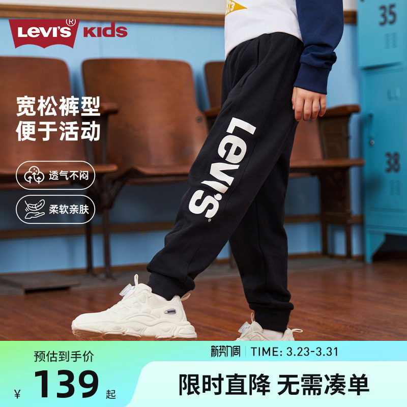 Levi's李维斯儿童裤子男童长裤春季新品中大童纯棉卫裤休闲运动裤