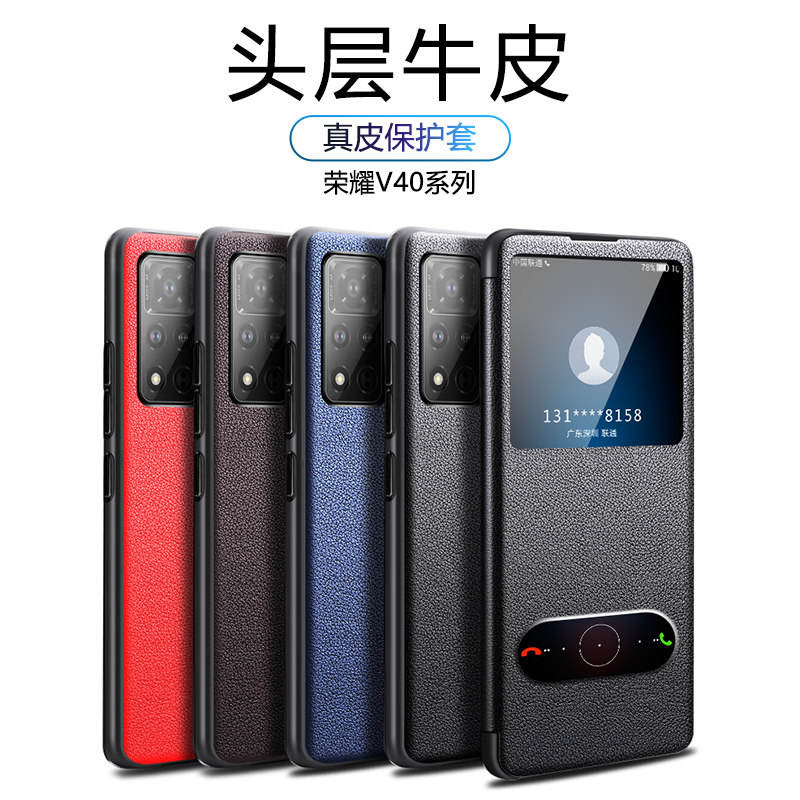 适用于荣耀v40手机壳真皮华为荣耀v40pro保护套翻盖皮套v40轻奢por高档5g全包防摔限量版honor男女新款超薄潮