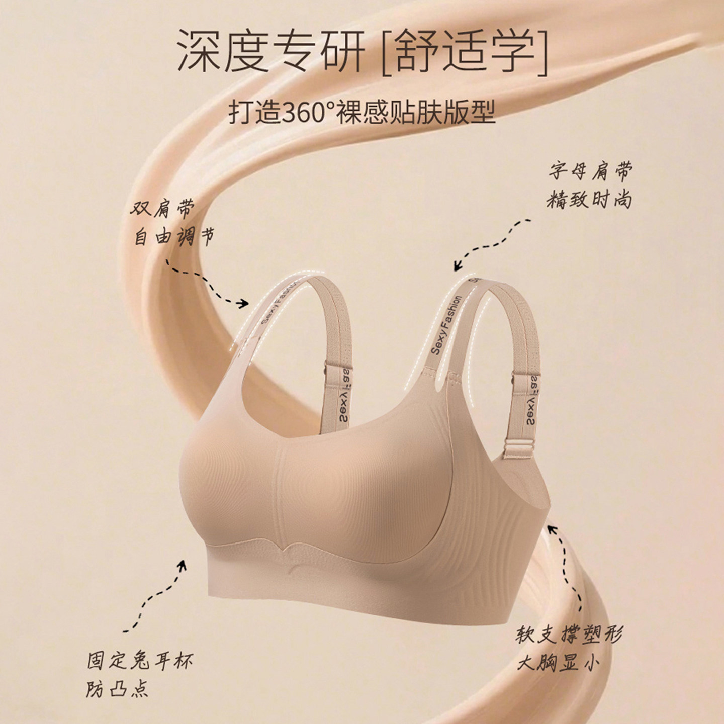 华熙玻尿酸菇娘家软支撑内衣大胸聚拢收副乳防下垂无痕粉底液文胸