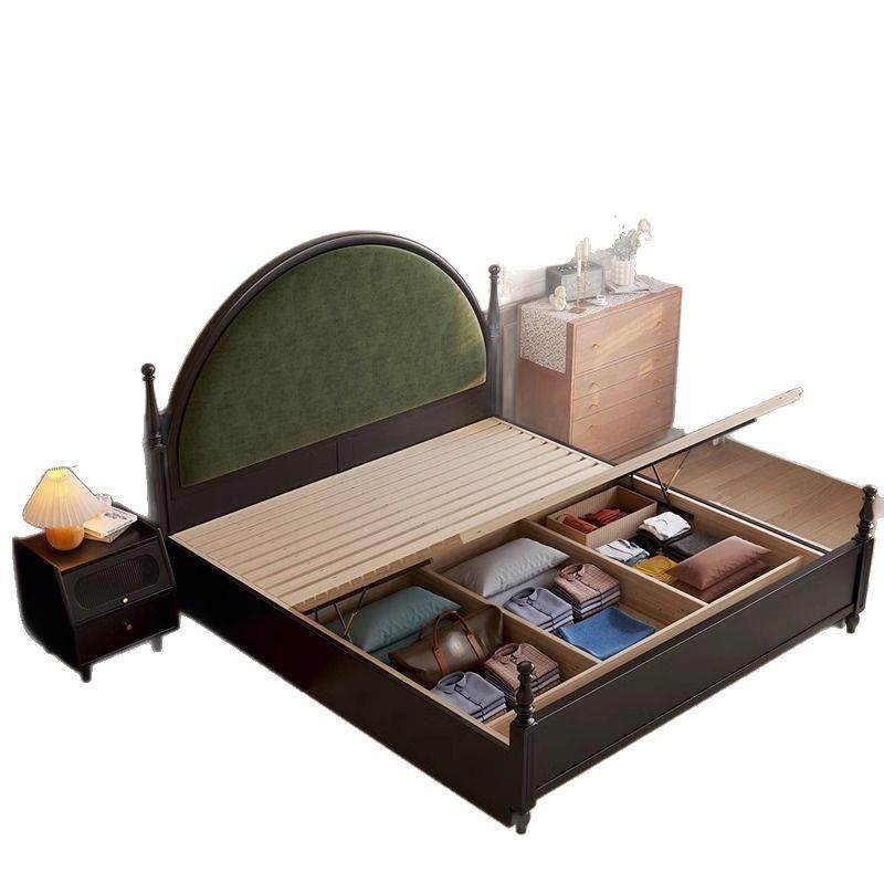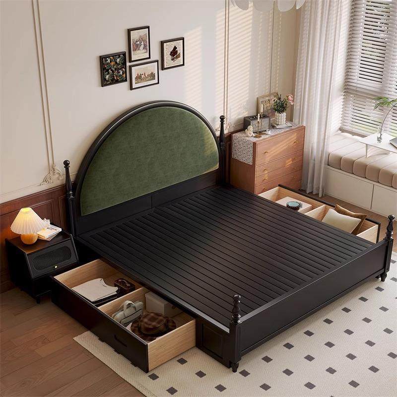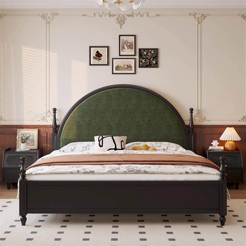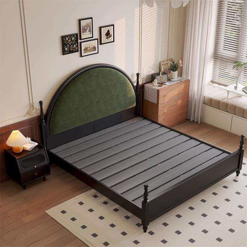 新款中古风布艺主卧1.8米实木床1.5复古乡村美式简约双人软包婚床