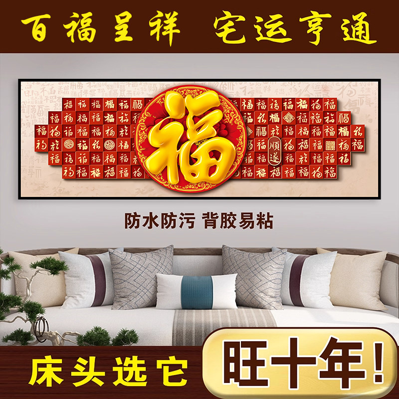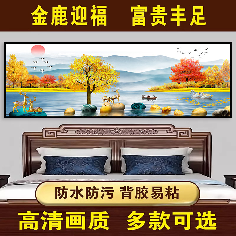 卧室床头背靠金山装饰画客厅挂画自粘中式沙发背景墙贴画壁画贴纸
