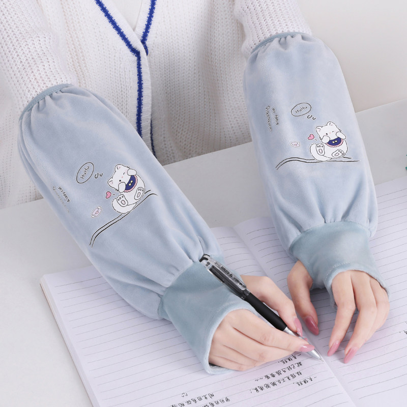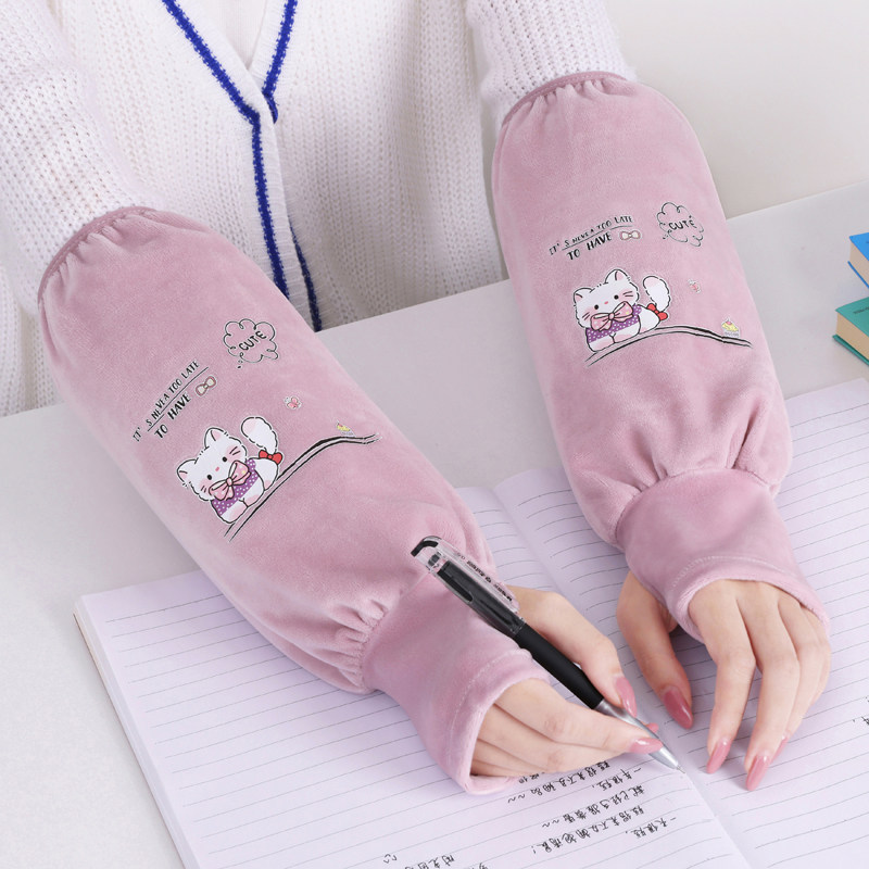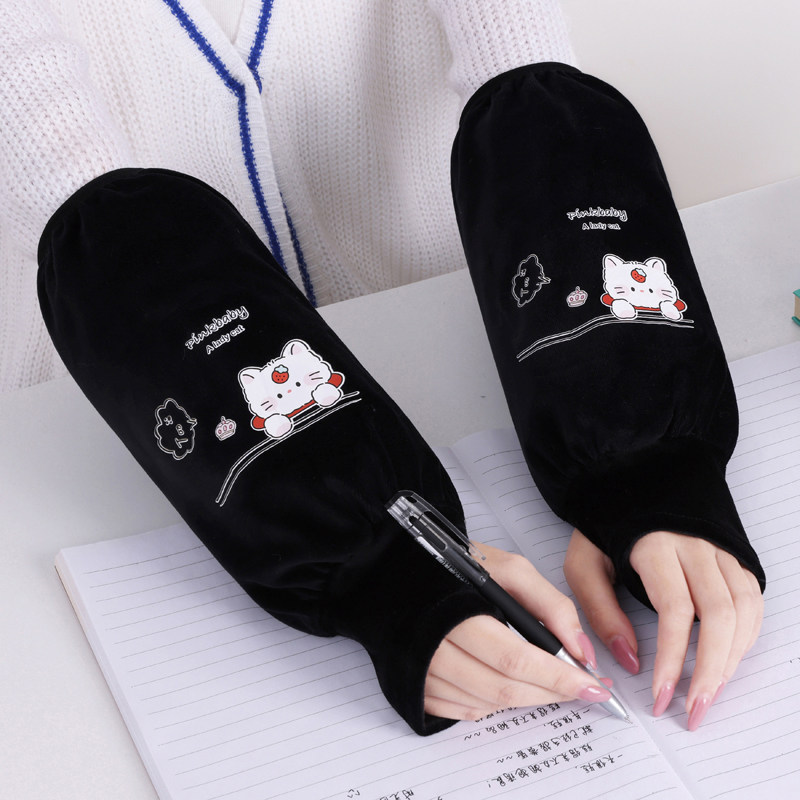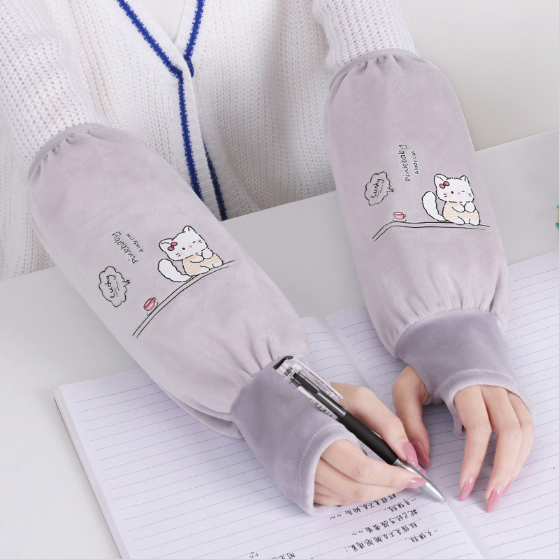 秋冬季长款套袖手套二合一学生连指袖套女防污护袖工作办公室防脏