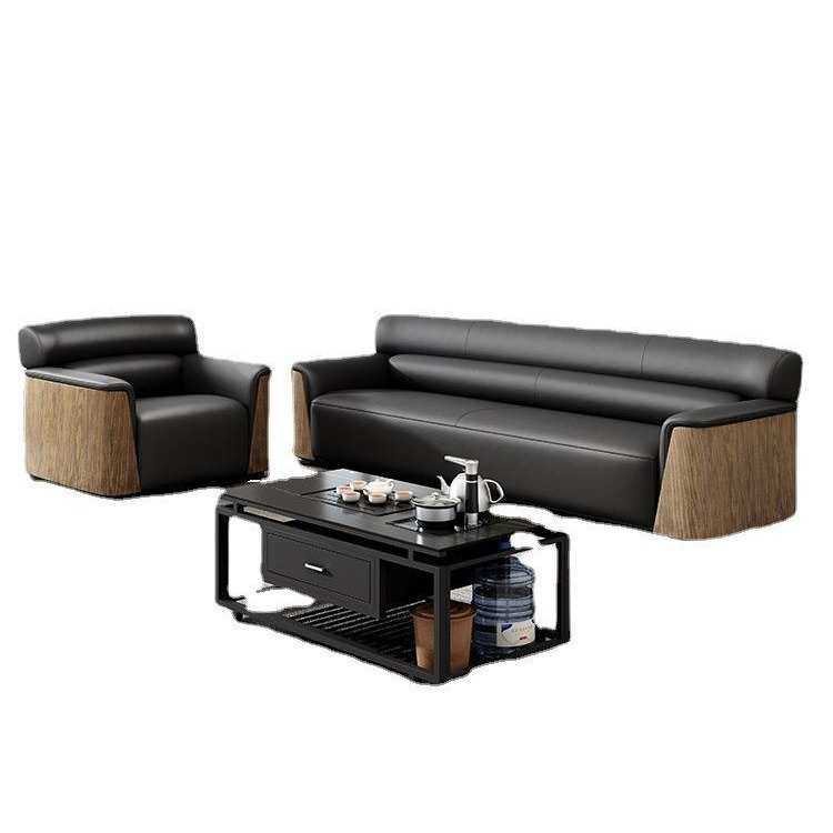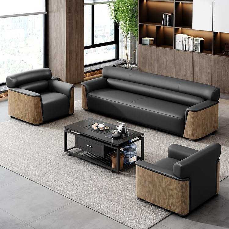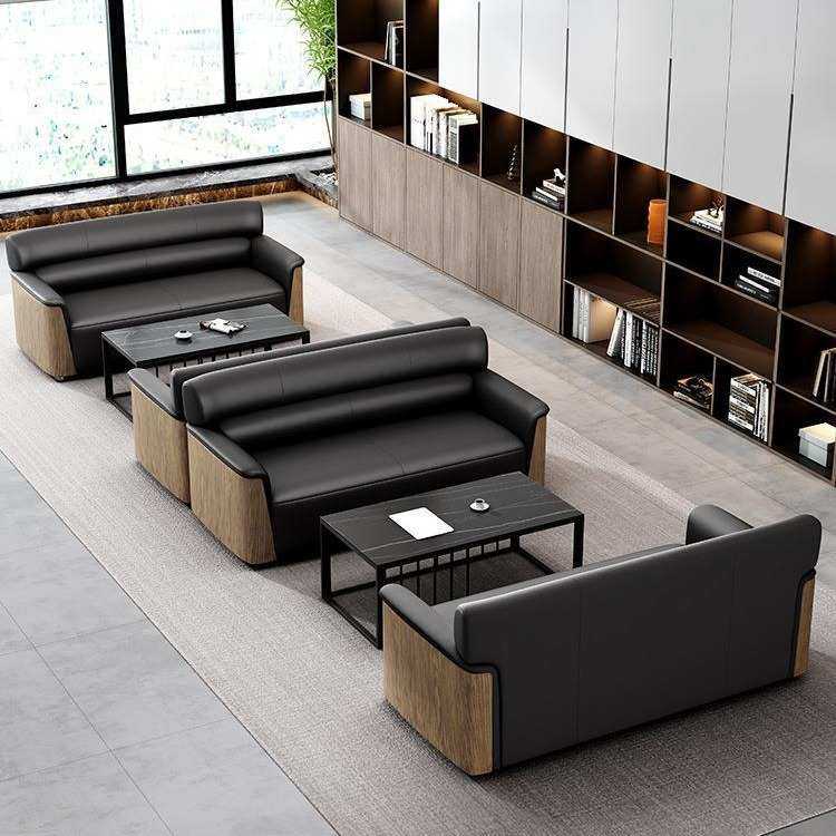 办公室沙发商务会议接待会客区办公简约现代茶几组合套装皮艺沙发
