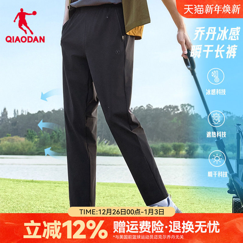 【瞬干科技】乔丹冰丝休闲裤薄款弹力男裤百搭长裤子户外运动黑色